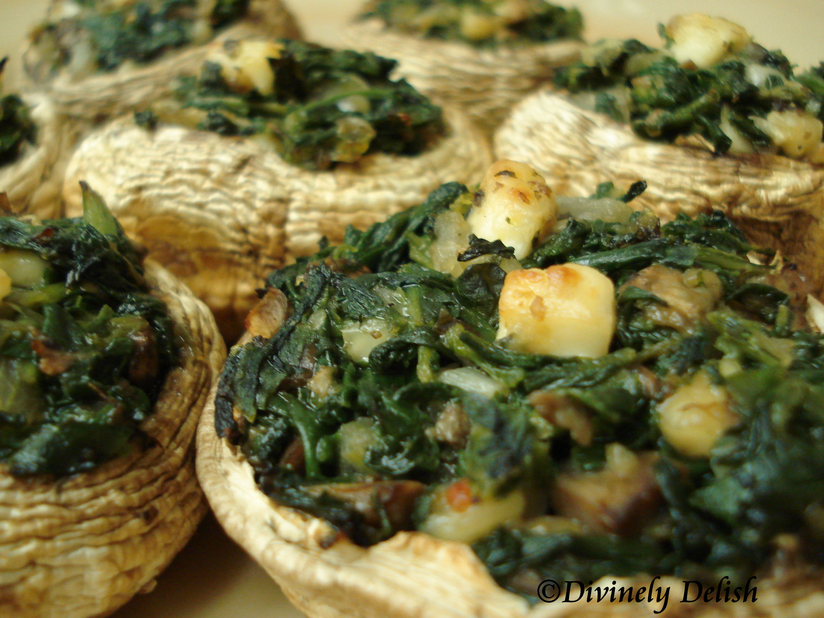 I personally like bacon and cheese in stuffed mushrooms, but one time that I wanted to make them for some friends, one of them didn’t eat bacon. I had an old recipe for chicken roulade filled with spinach and feta, so I decided to use this vegetarian filling instead for the mushrooms. I was amazed at how delicious they turned out!