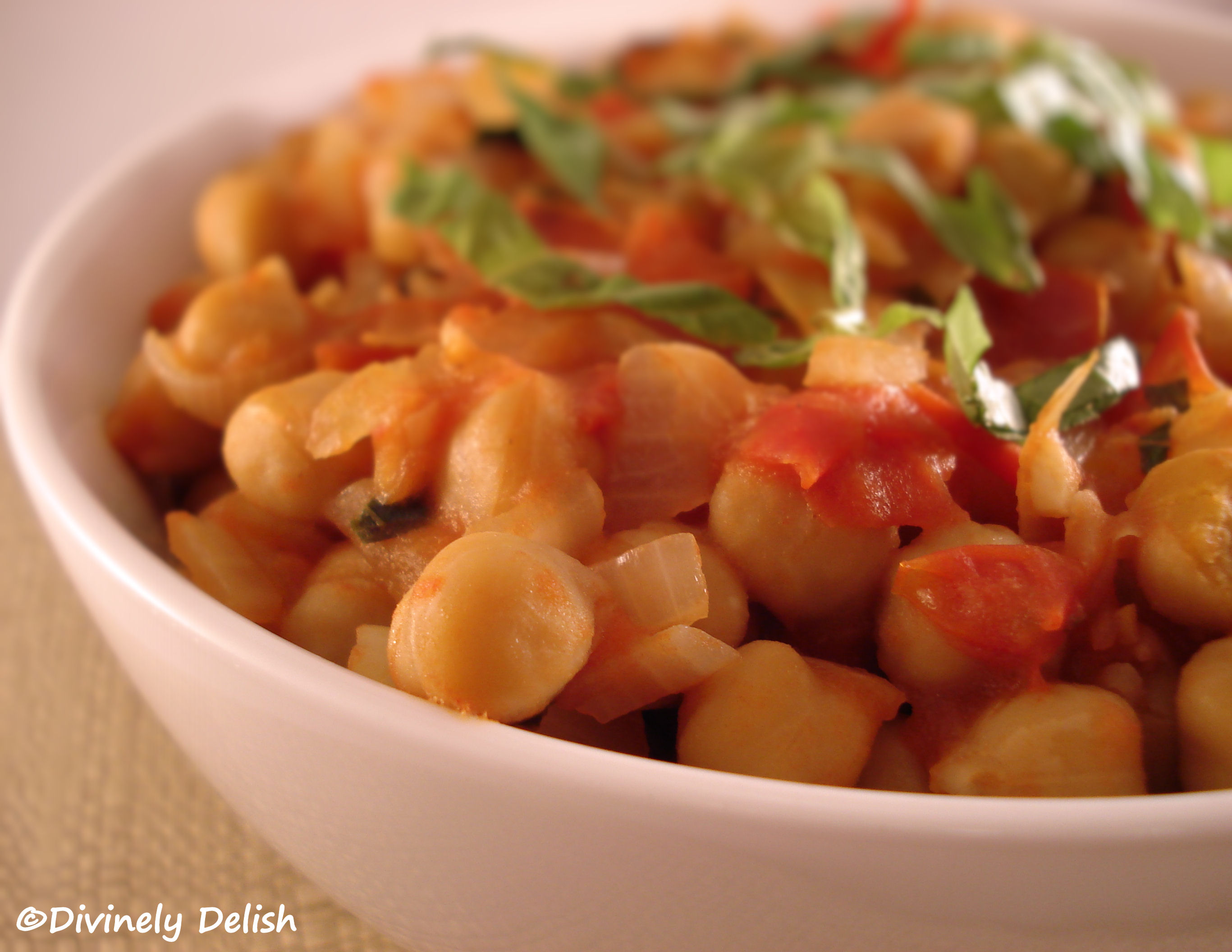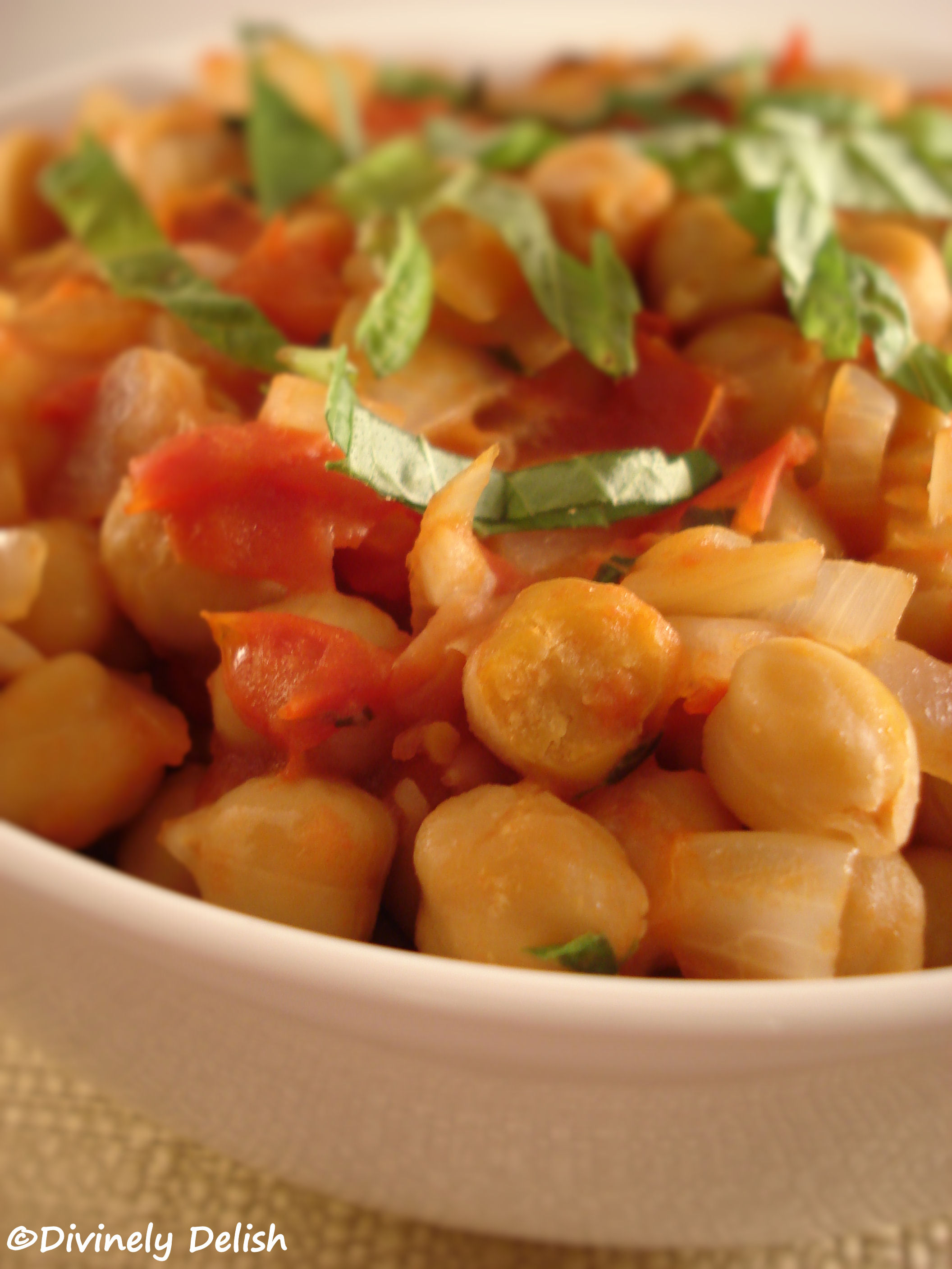 2) Add tomato paste, basil, sugar, chickpeas and salt to taste.