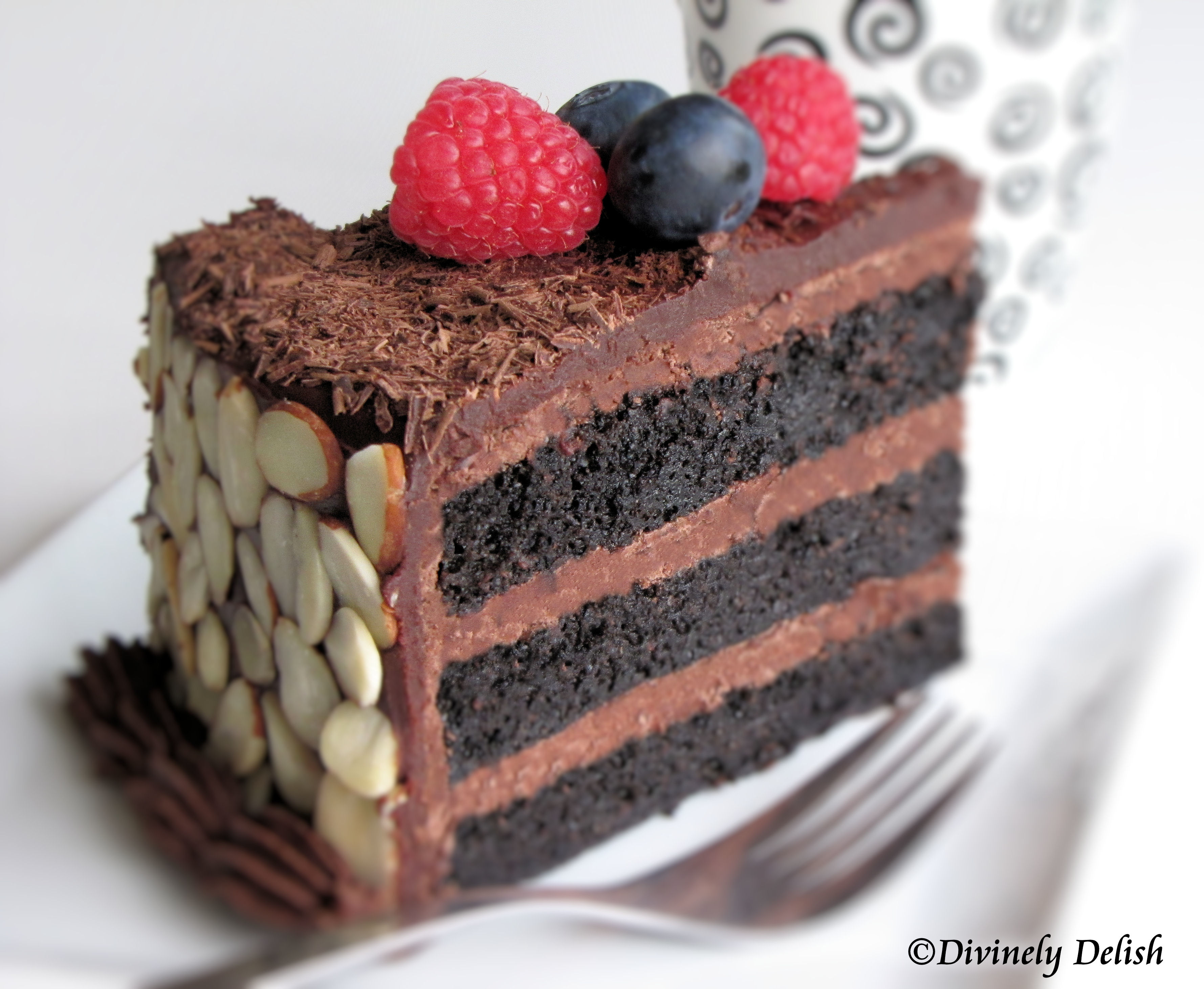 This is a wonderfully moist Devil’s Food Cake, filled with Chocolate Buttercream, covered with a Dark Chocolate Glaze and sprinkled with shavings of dark chocolate. You can’t get more chocolatey than that! Personally, I found it too rich, but if you’re a chocoholic, you won’t be complaining!