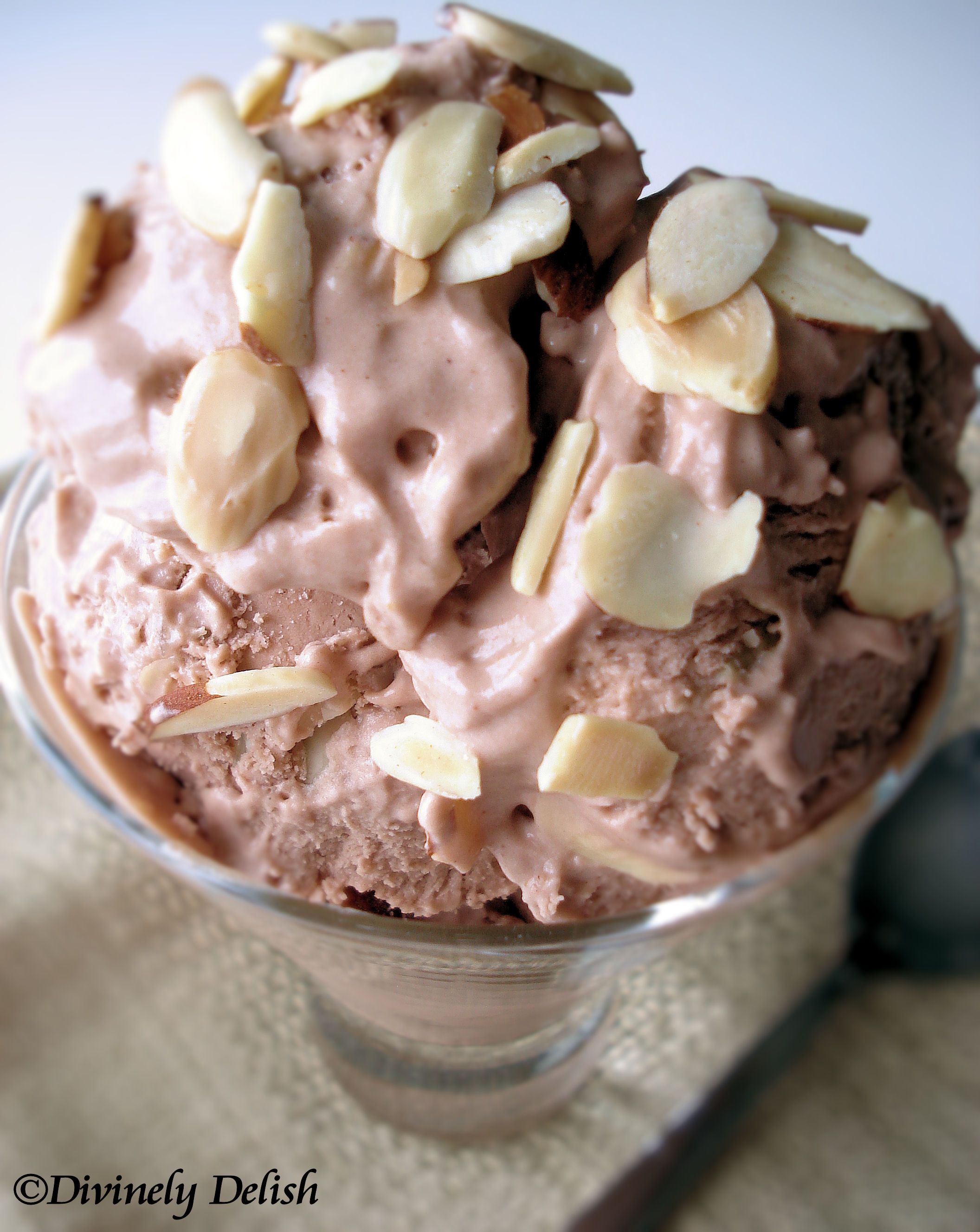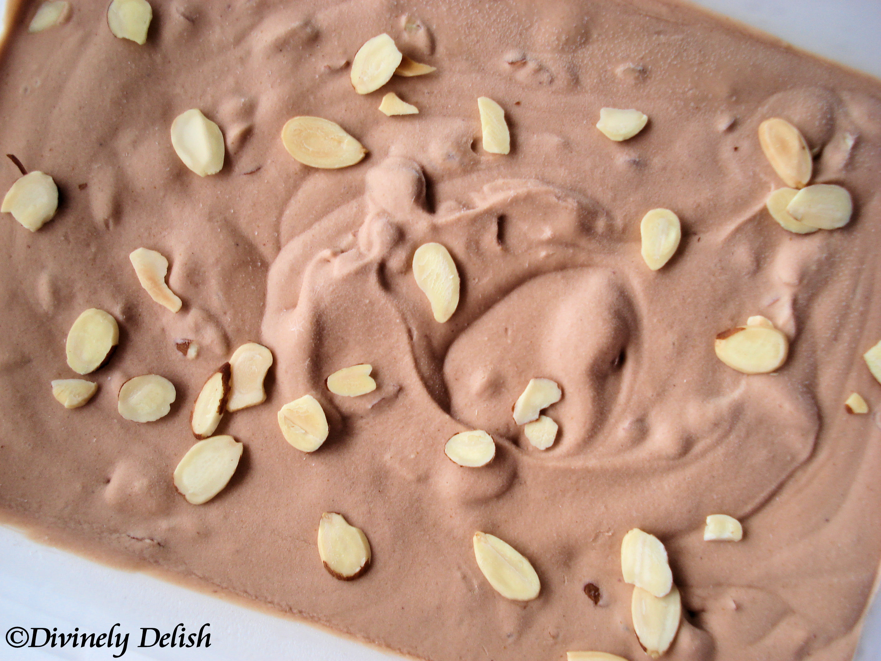 CHOCOLATE PEANUT BUTTER ICE CREAM WITH TOASTED ALMONDS