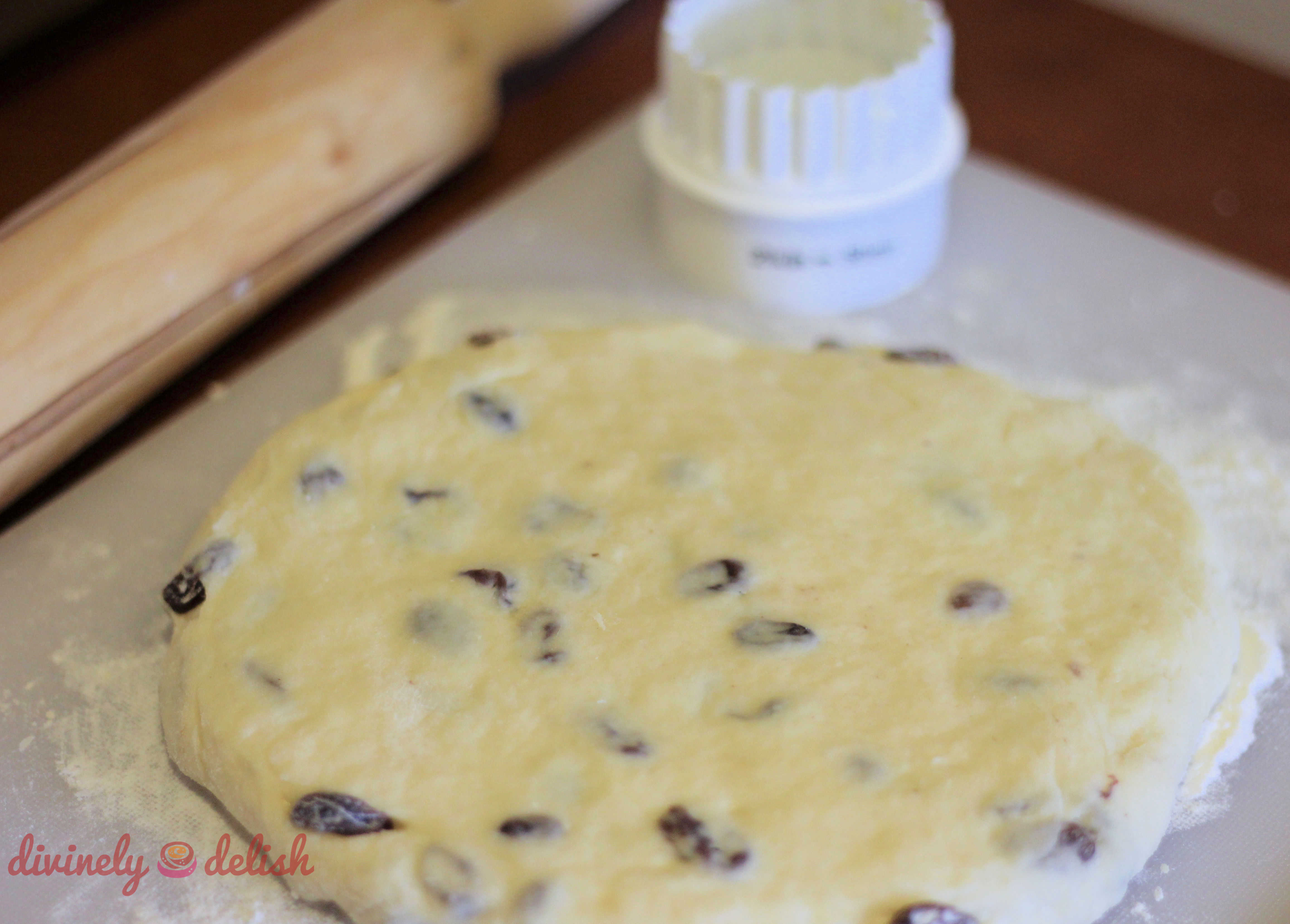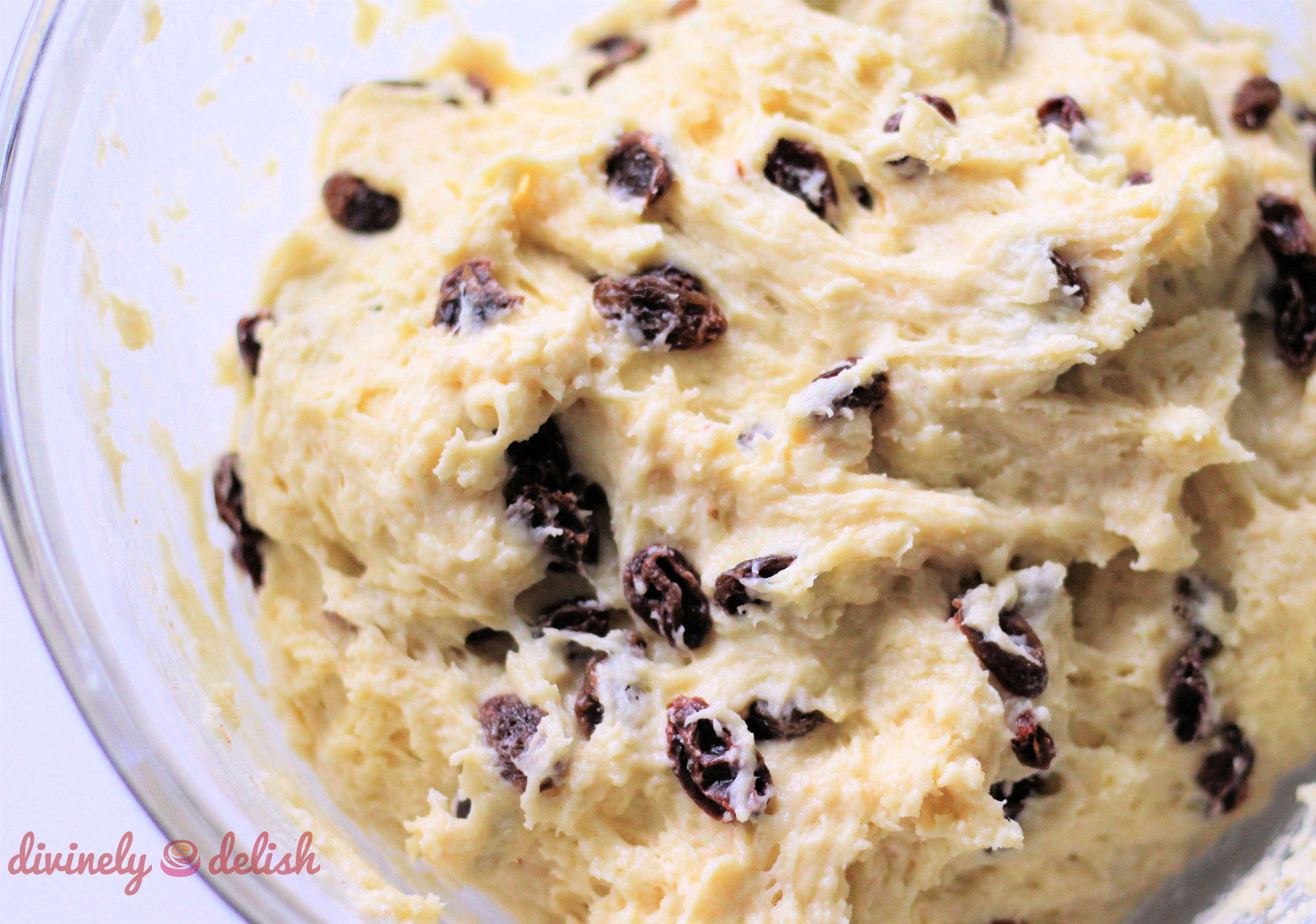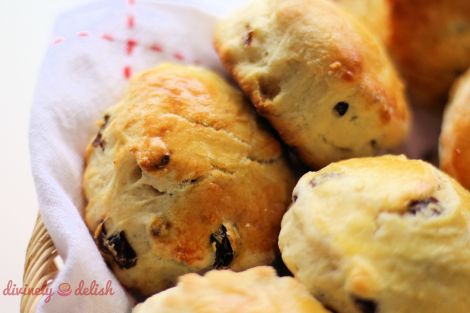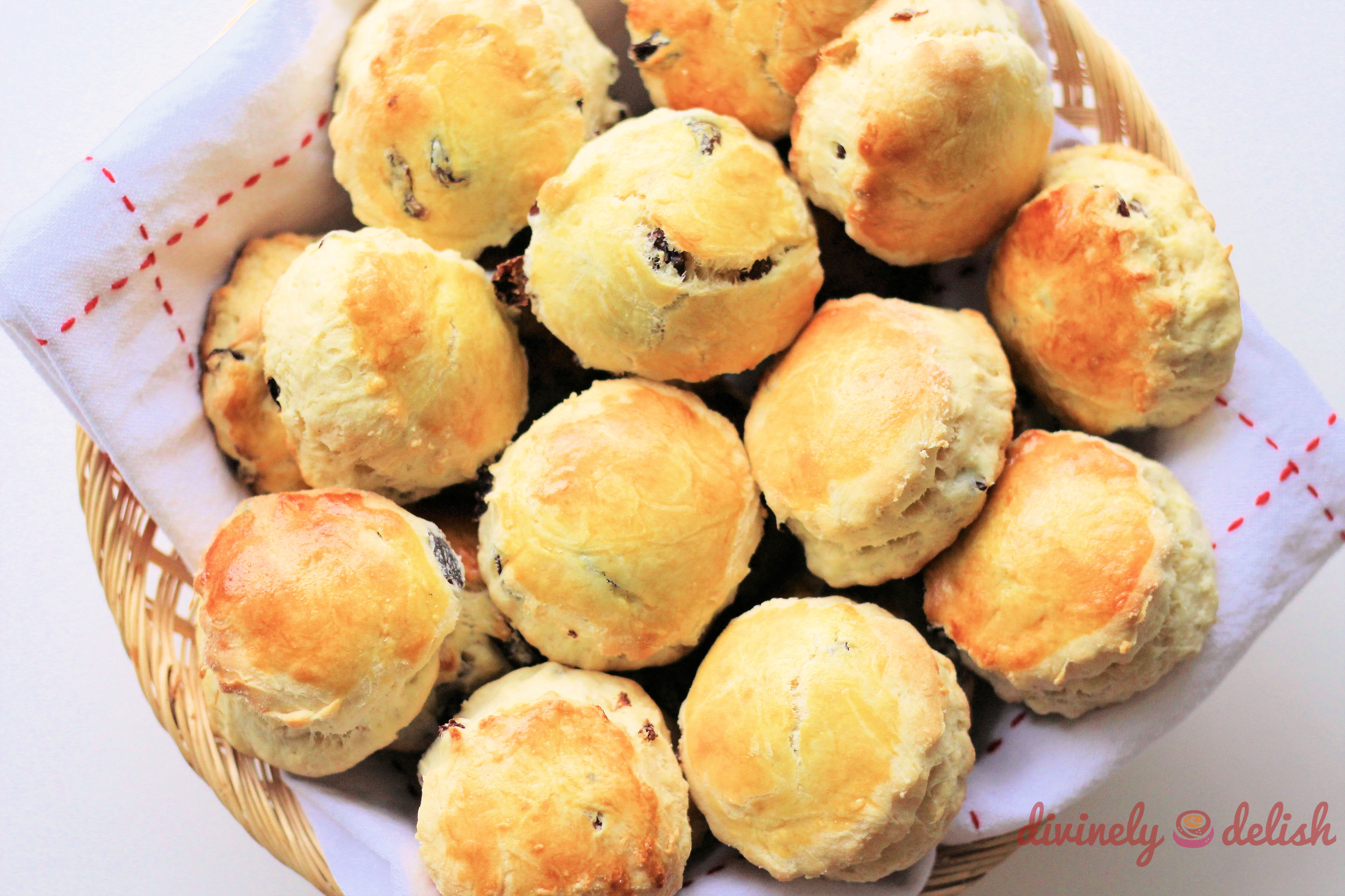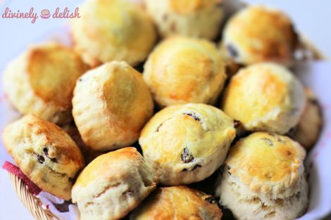 I usually only use butter, but you can also substitute part of the butter with lard, for extra flakiness. Instead of raisins, you can add in whatever you desire. If using raisins or other dried fruit such as currants or cranberries, I would suggest that you first soak the fruit in a bowl of hot water for about 10 minutes, and then strain it. This helps to soften and plump up the dried fruit, and makes them juicier, in addition to preventing the fruit from drawing moisture from the batter.