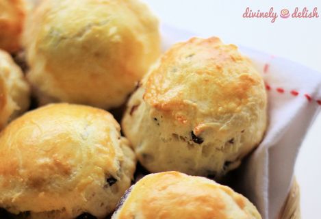 Just when I’d decided on making raisin scones, I came across a recipe for Bacon and Chive scones and considered making these savoury scones instead. But no, I just had to make both kinds, so I spent the better part of this past Sunday baking a lot of scones!