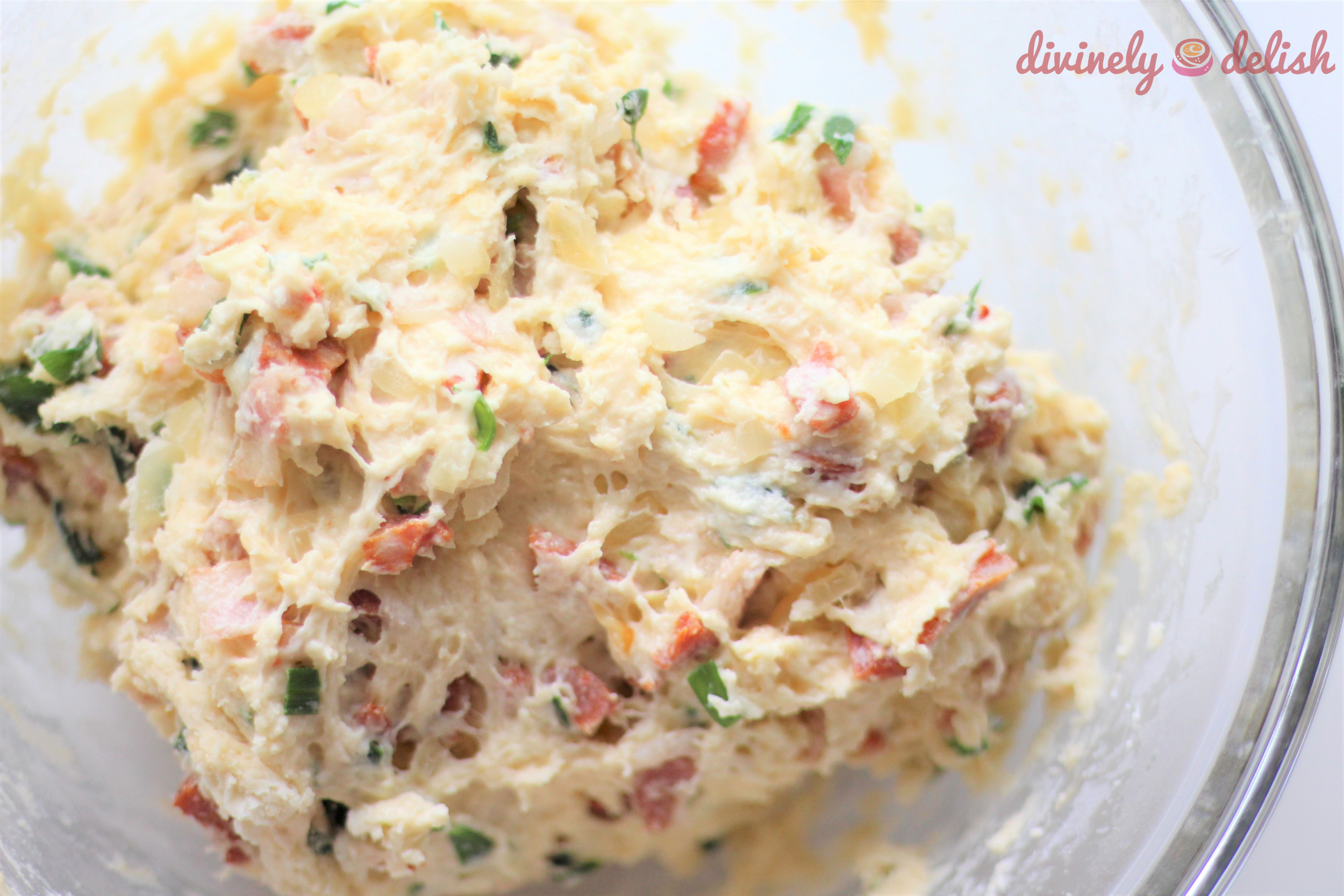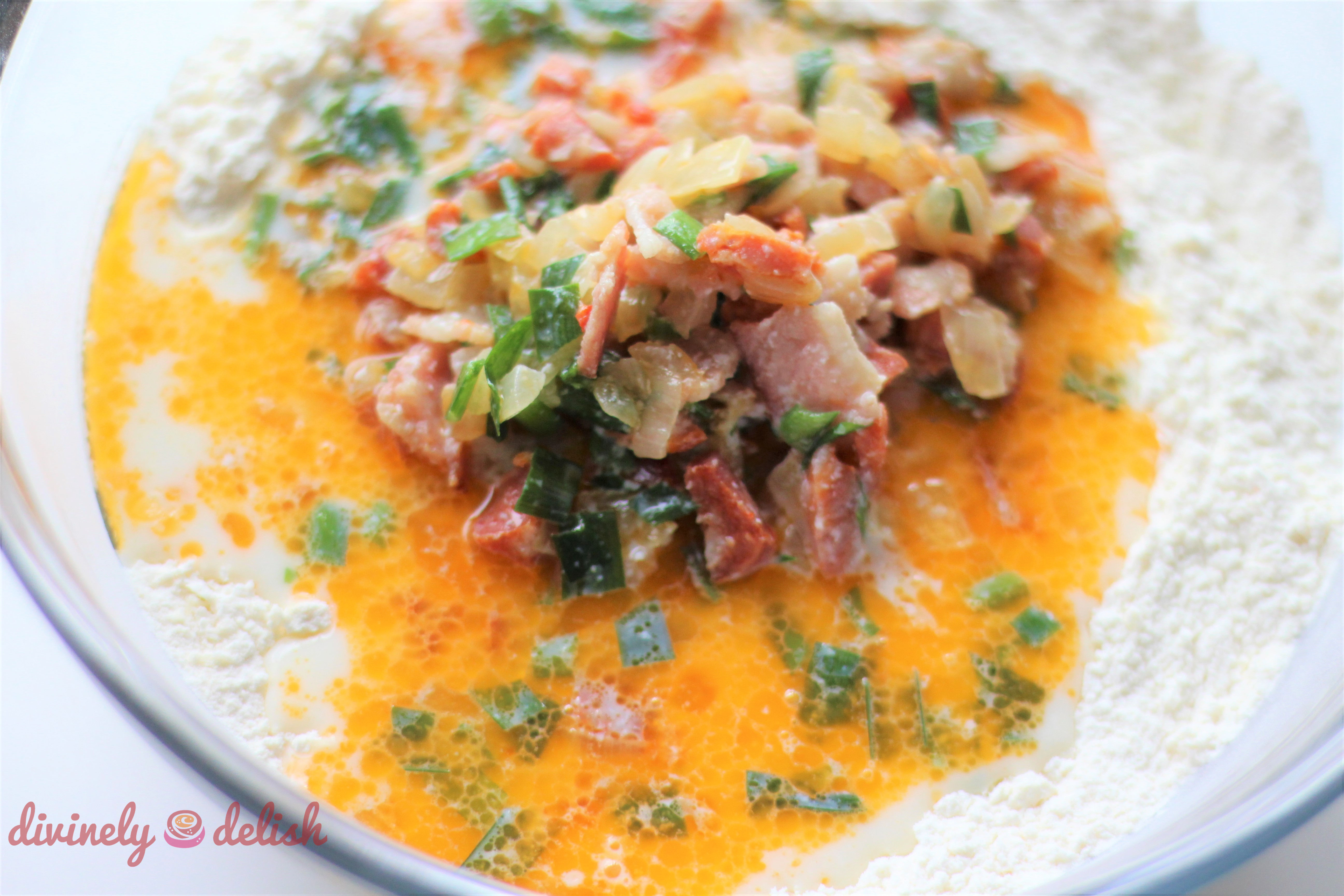 4) In a medium bowl, stir together milk, chives and bacon mixture until combined. Set aside.