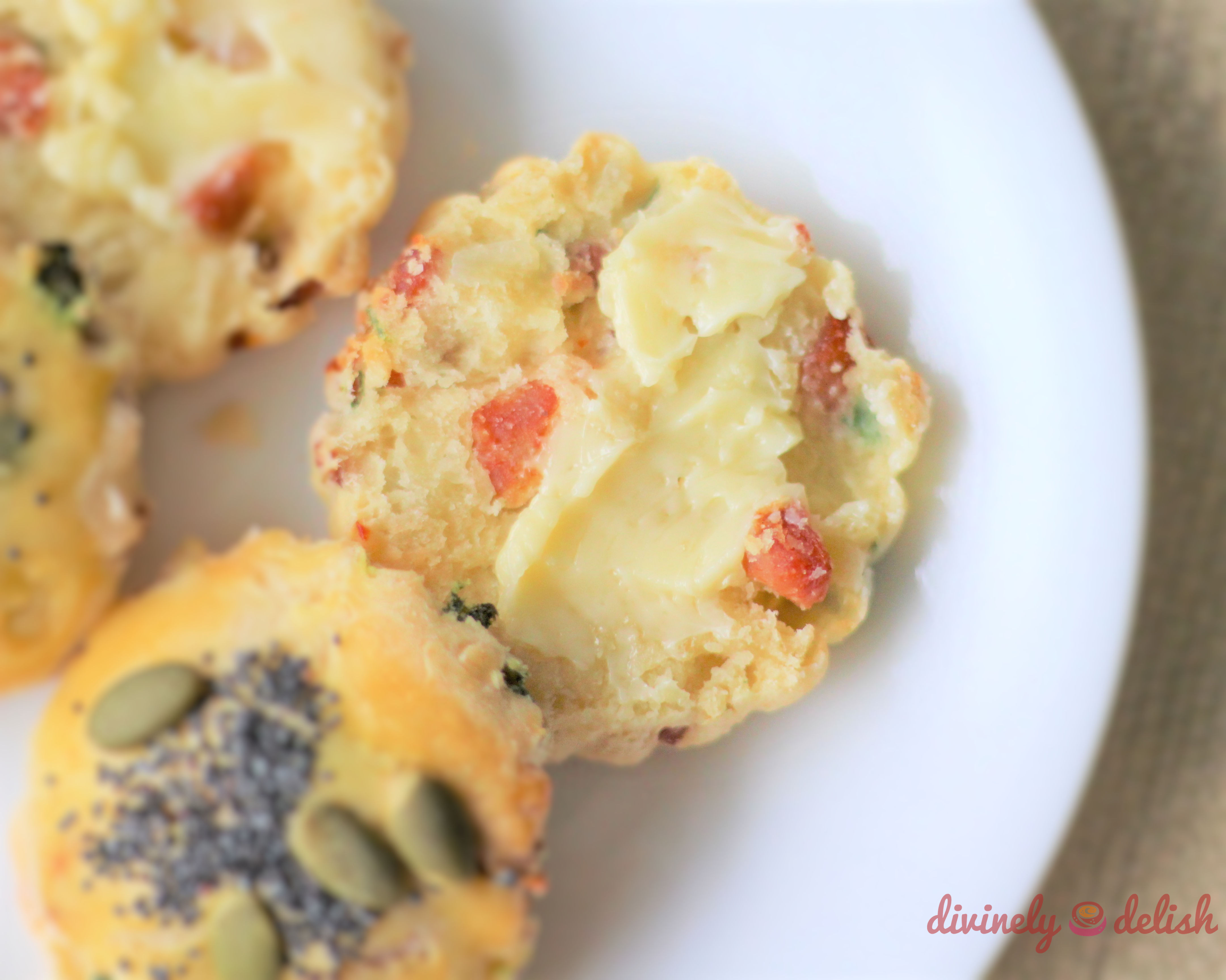 Scones always taste best freshly baked and warm. Slather on some butter, cream cheese or goat’s cheese. Mmm…