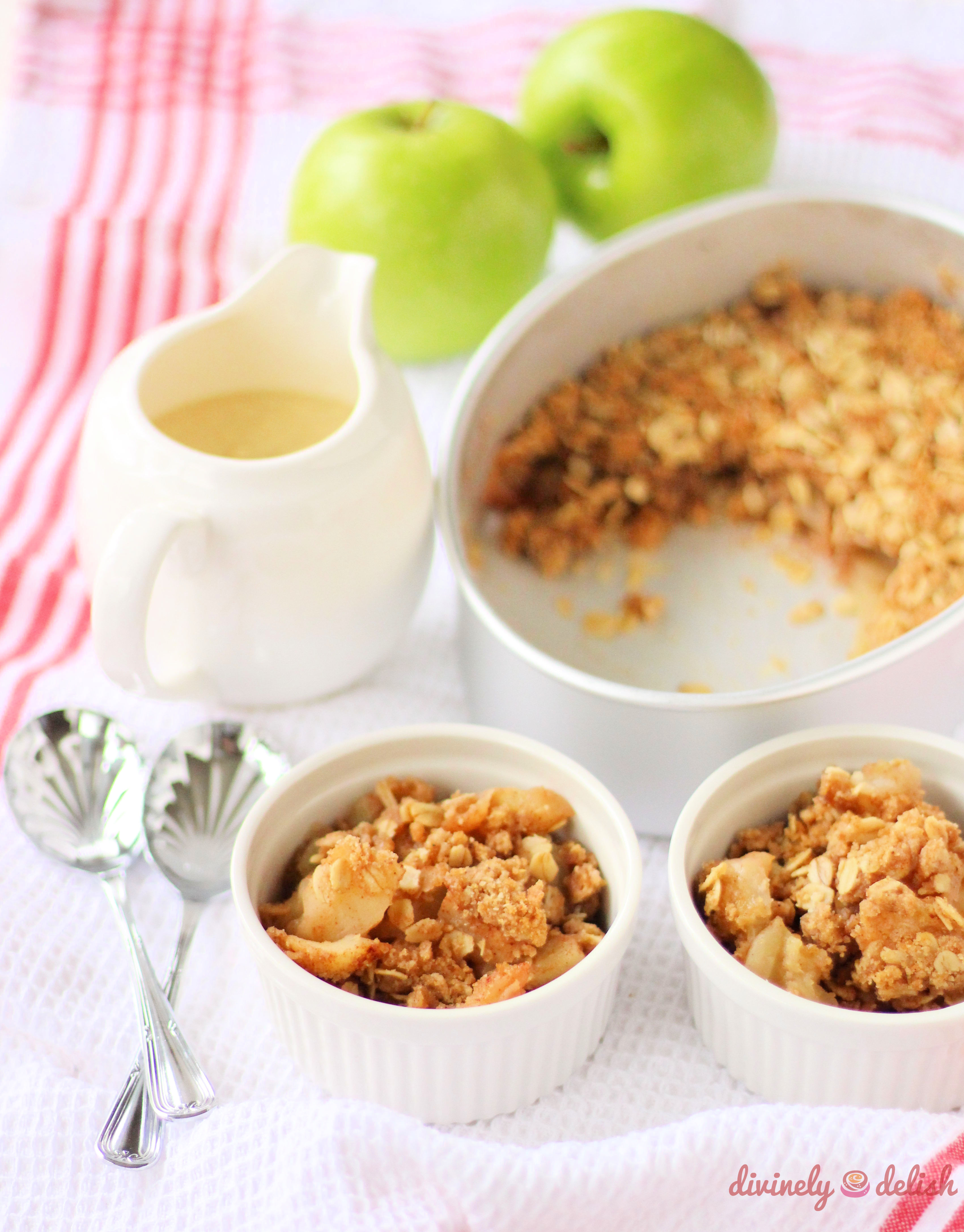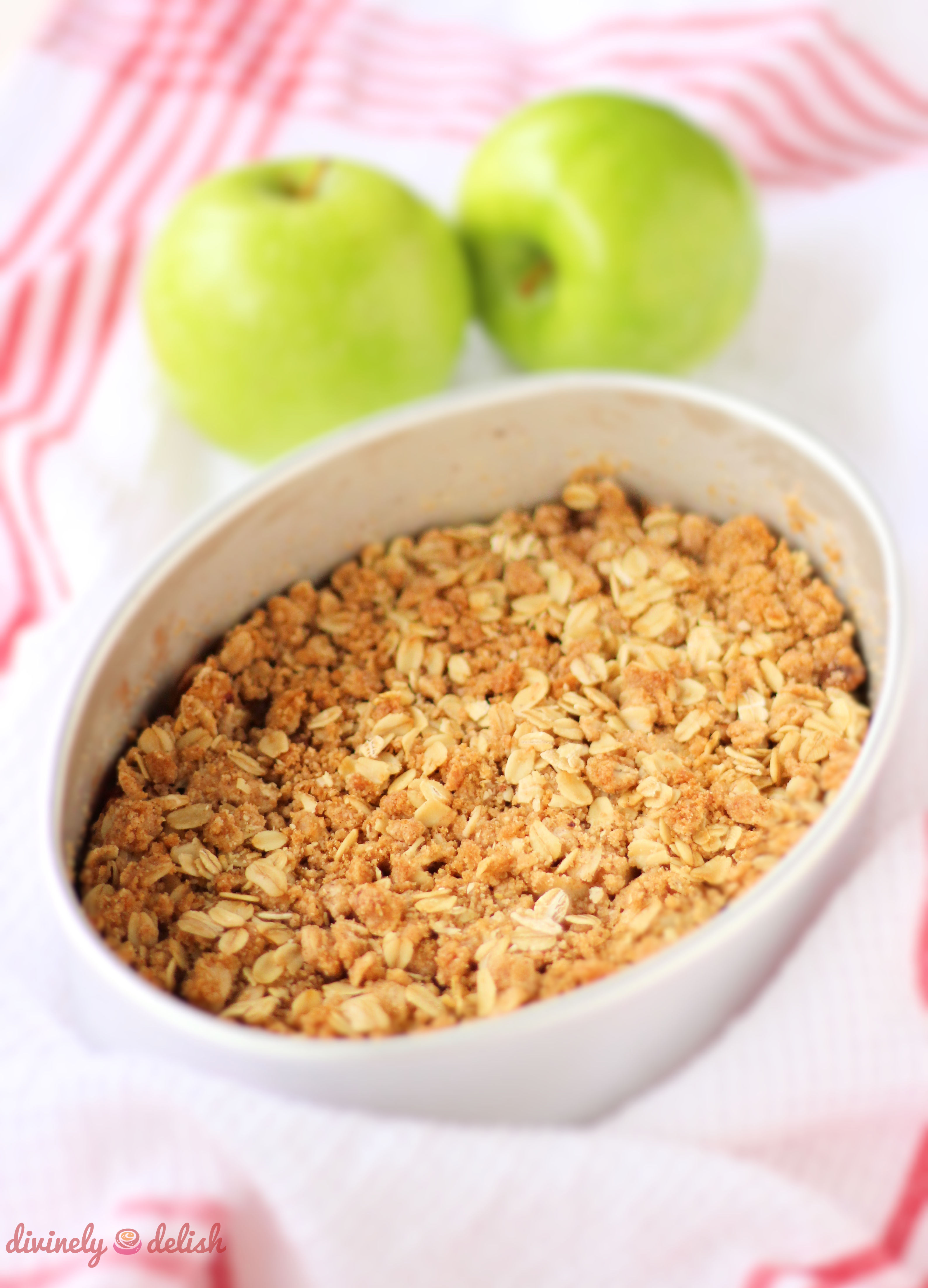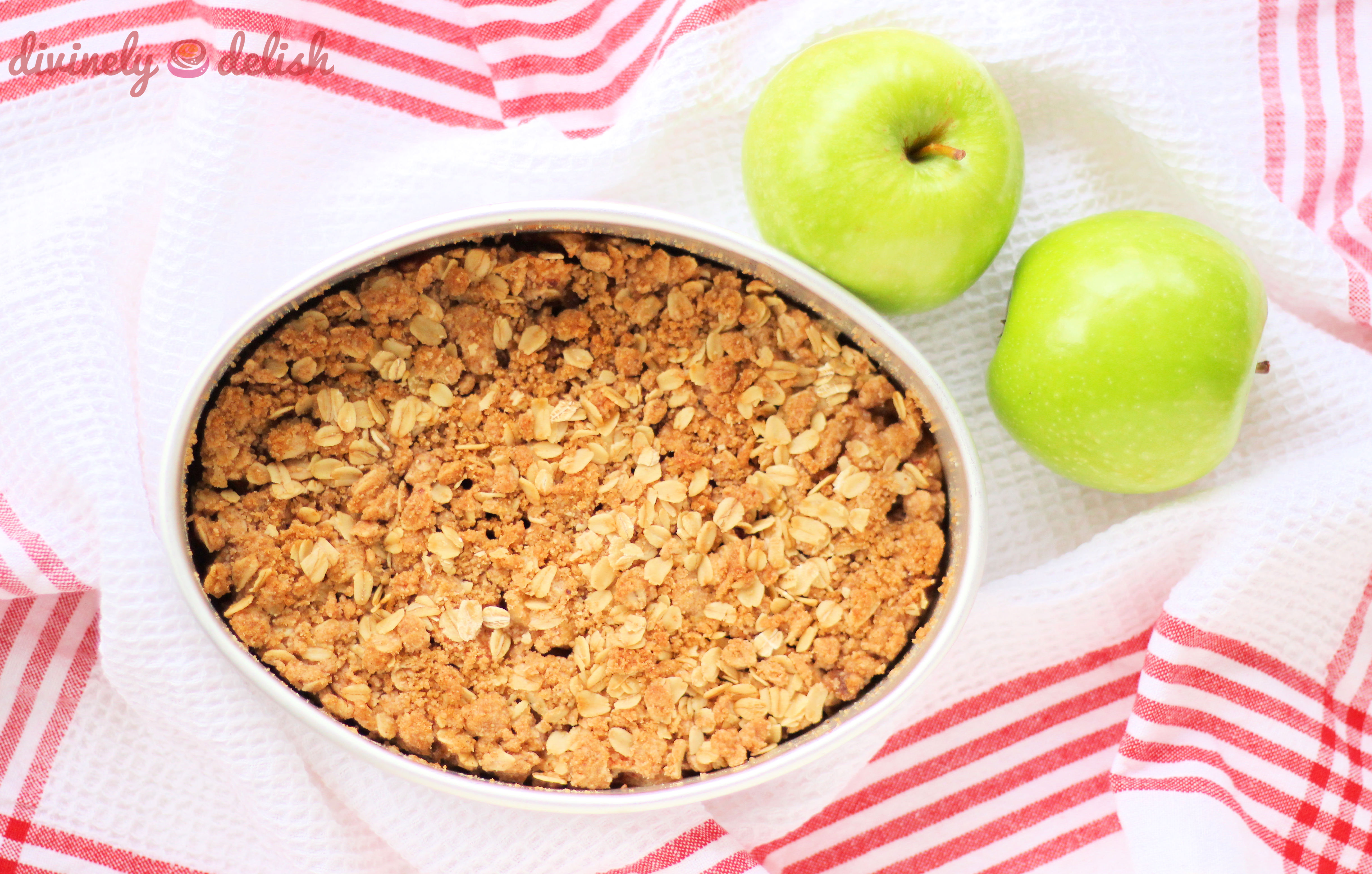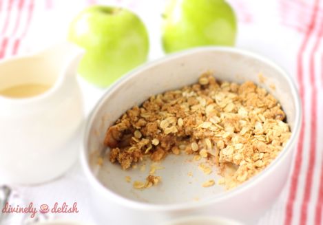4. Place apples in baking dish and spread crumble mixture evenly over apples. Bake for 20-25 minutes.