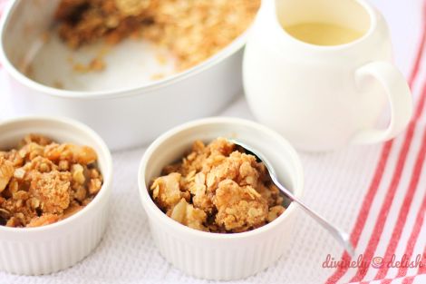 I decided to make Apple Crumble. It just seemed like the quintessential fall dessert and well, who doesn’t like warm apple crumble topped with a scoop of vanilla ice cream, a dollop of whipped cream or a generous drizzle of custard sauce?! Yum!