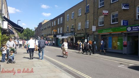 Broadway Market in Hackney, East London, is a really hip area with lots of nice little shops, organic stores, cafes, bars and restaurants.