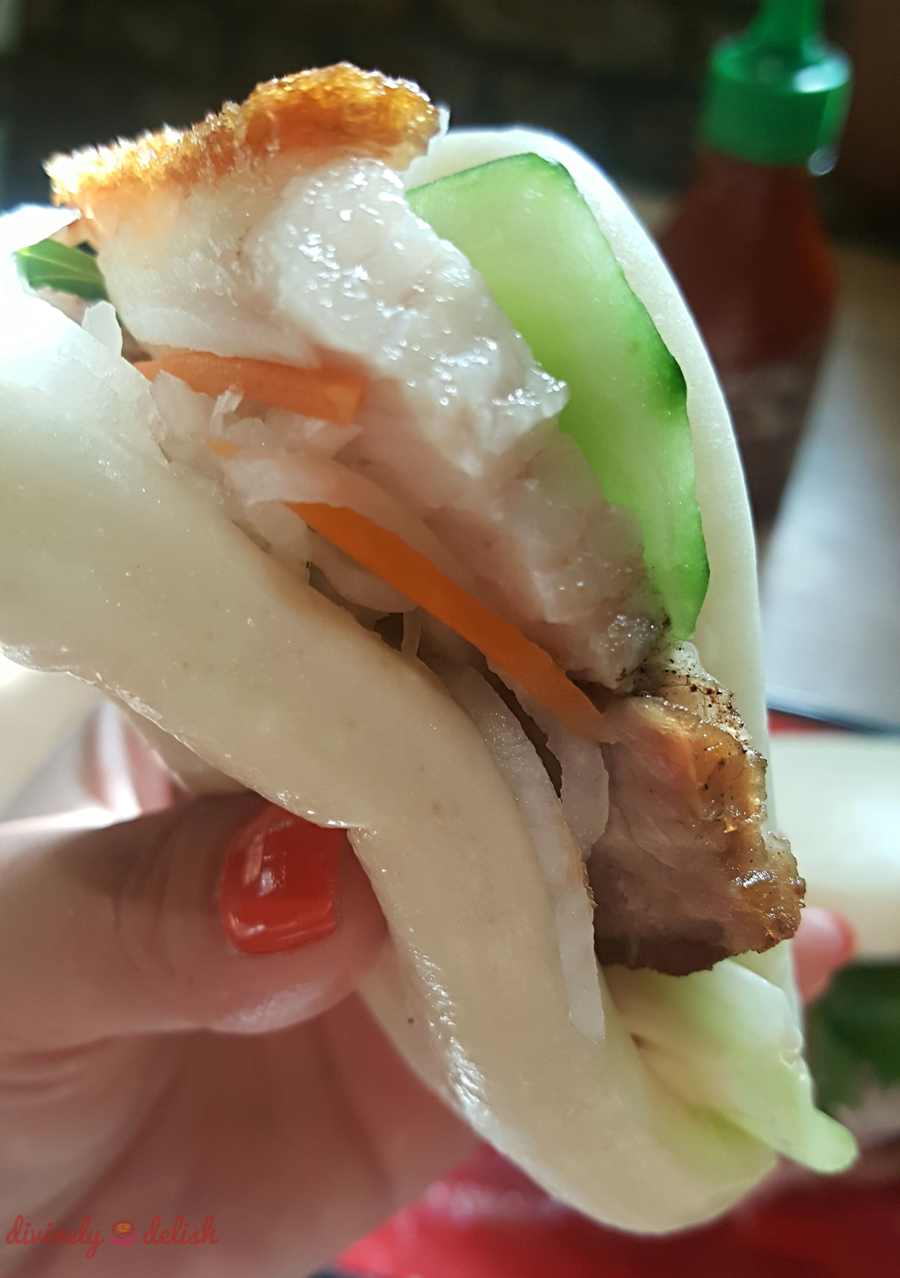 It seems the Taiwanese snack, “gua bao” (a piece of soft and fluffy steamed “flatbread” filled with meat and condiments, and folded in half, kind of like a taco) has really caught on in London, where they are known as bao or bao buns. Most people here in Vancouver wouldn’t know what I’m talking about, but it’s all the rage in London, where you can find bao buns in many food markets and restaurants. We totally went crazy for bao too!