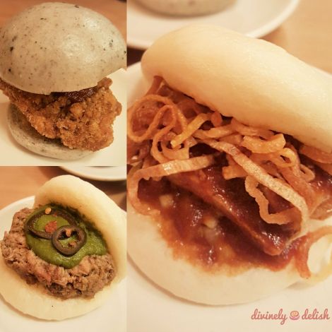 Pork Belly Bao with Hoisin Sauce and Scotch Bonnet Pork Ribs at Street Feast Hawker House