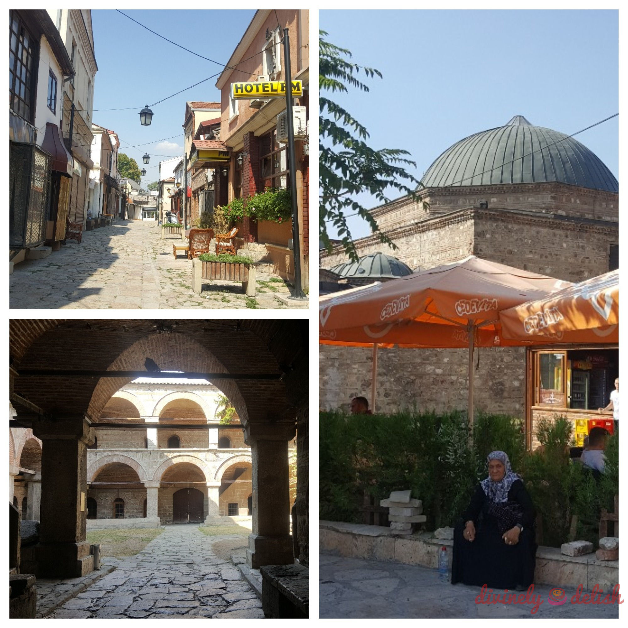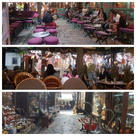 Empty streets in the Old Town and Bazaar on the day of Eid-al-Adha. I did manage to take a peek inside the compound of a former Turkish “han” or caravanserai / roadside inn (bottom left)