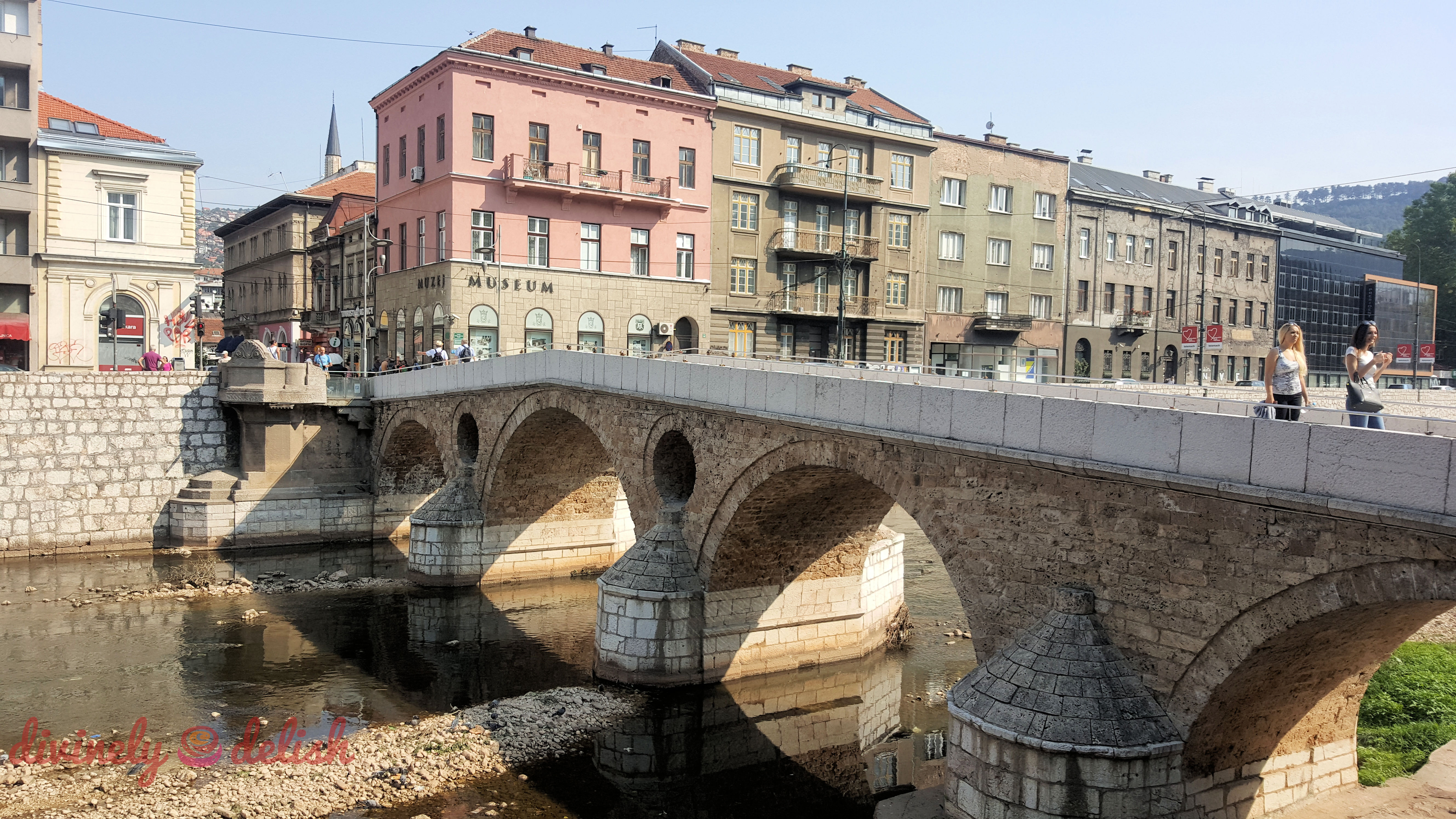 The famous Latin Bridge in Sarajevo. The “museum” corner on the other side of the bridge was where Franz Ferdinand, heir to the Austro-Hungarian throne, was assassinated.