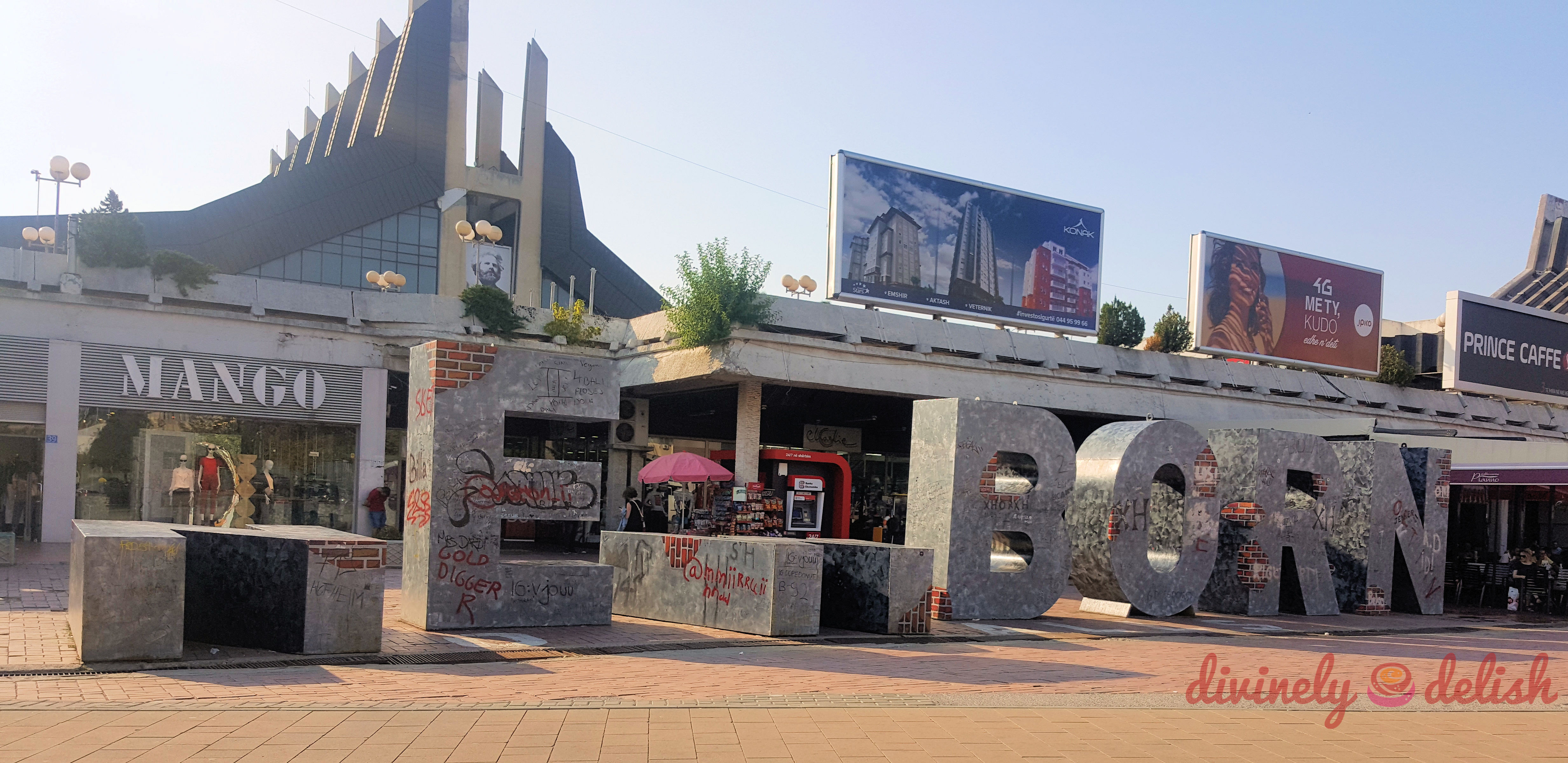 The “Newborn” monument in Prishtina that was first unveiled in February 2008, after Kosovo declared independence from Serbia. I thought vandals had knocked down the letters “N” and “W”, and I hadn’t noticed the extra letters painted in white on the ground. Only later when I saw the Facebook page, I realized it says “No Walls” if you view the monument from above!