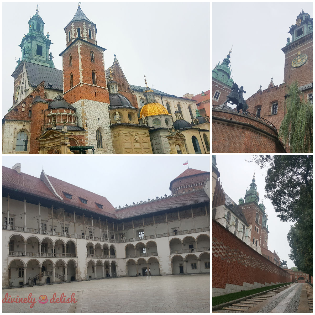 Top left: Wawel Cathedral; Bottom left: 16th century Renaissance inner courtyard of Royal Castle; Top and bottom right: Herbowa Gate, entrance to Wawel Hill