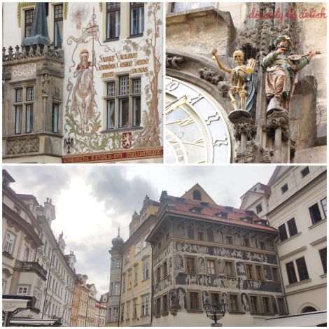 Staroměstské náměstí (Old Town Square): Ornately painted buildings and statues of Death and the Turk by the Astronomical Clock
