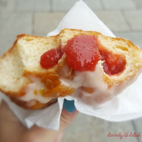 Believe it or not, I’d never actually eaten a filled doughnut before!! I just always associated doughnuts with being a typical overly sweet American snack food. Maybe it’s because in North America doughnuts do mostly come glazed in an assortment of colours and sprinkles and what not, and I just imagined them to be cloyingly sweet.