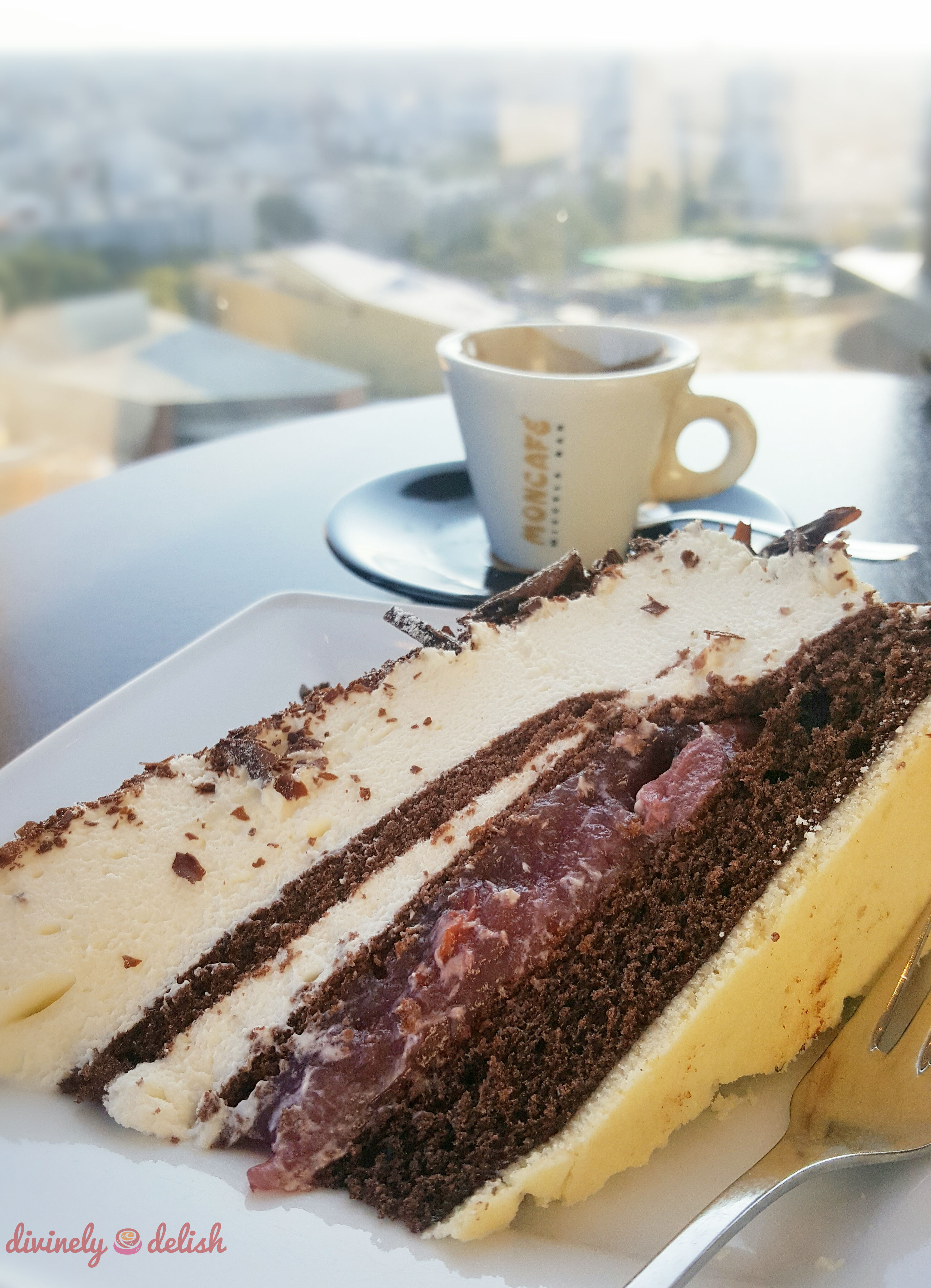 Enjoying the view and a slice of Black Forest Cake at the Panorama Cafe of the Panoramapunkt at Potsdamer Platz