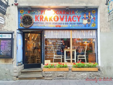 Back at Rynek Glowny, it was just a sea of umbrellas. It was such a grey and gloomy day that I didn’t bother taking pictures. I took refuge from the rain in the covered Cloth Hall (known locally as Sukiennice), briefly browsed through the souvenir market there, and then decided the best thing to do would be to go for a nice lunch! Coincidentally, Chimera, which was on my list of restaurants to check out, was conveniently located just steps from Rynek Glowny and across the street from my hotel! With nowhere else to go, I enjoyed a hearty and leisurely lunch of traditional Polish dishes. I asked the server if I was ordering too much food for just myself. She said yes, but I thought, why not?! I assured her I would probably be able to finish all the food…and I did! The zurek soup (“white borscht” with smoked ham, bacon and quail egg), bigos (considered Poland’s national dish, this “hunter’s stew” was made of venison and cabbage) and pork pierogi (Polish dumplings) were absolutely delicious!