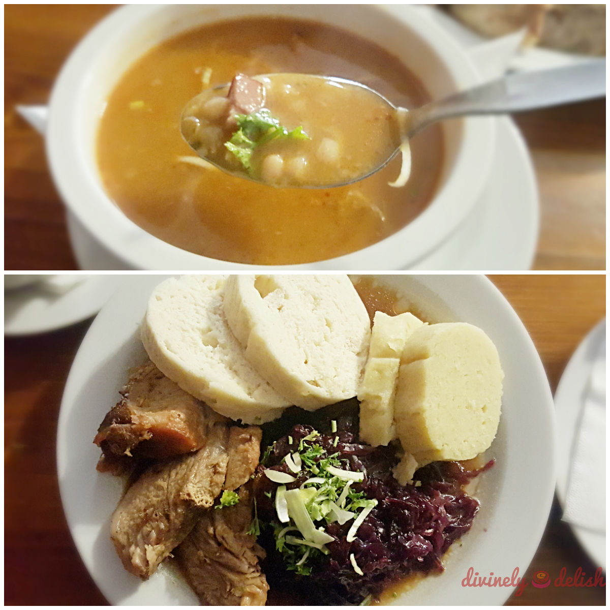 At Hospoda na Louzi, a pub which serves traditional Czech food, I had a tasty and filling lunch of Bean Soup with Paprika and Bacon and the “Czech national meal” of Roast Pork with dumplings and cabbage.