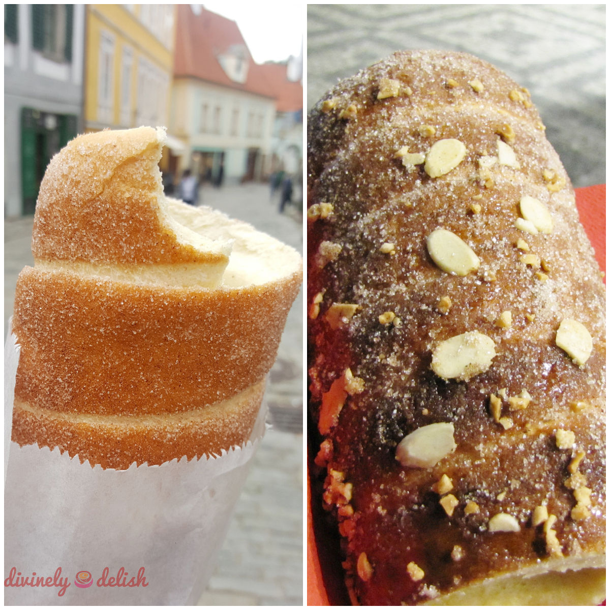 I was most surprised when I first saw chimney cake in Cesky Krumlov! It’s called Trdelník, and I soon found it everywhere in Prague! Let’s just say, since I was on holiday, I felt justified to have more than my fair share of trdelnik! I prefer eating it on its own, but I saw some places getting really creative and serving trdelnik filled with ice cream, or apples and honey, topped with whipped cream, drizzled with chocolate sauce and garnished with a rolled wafer!