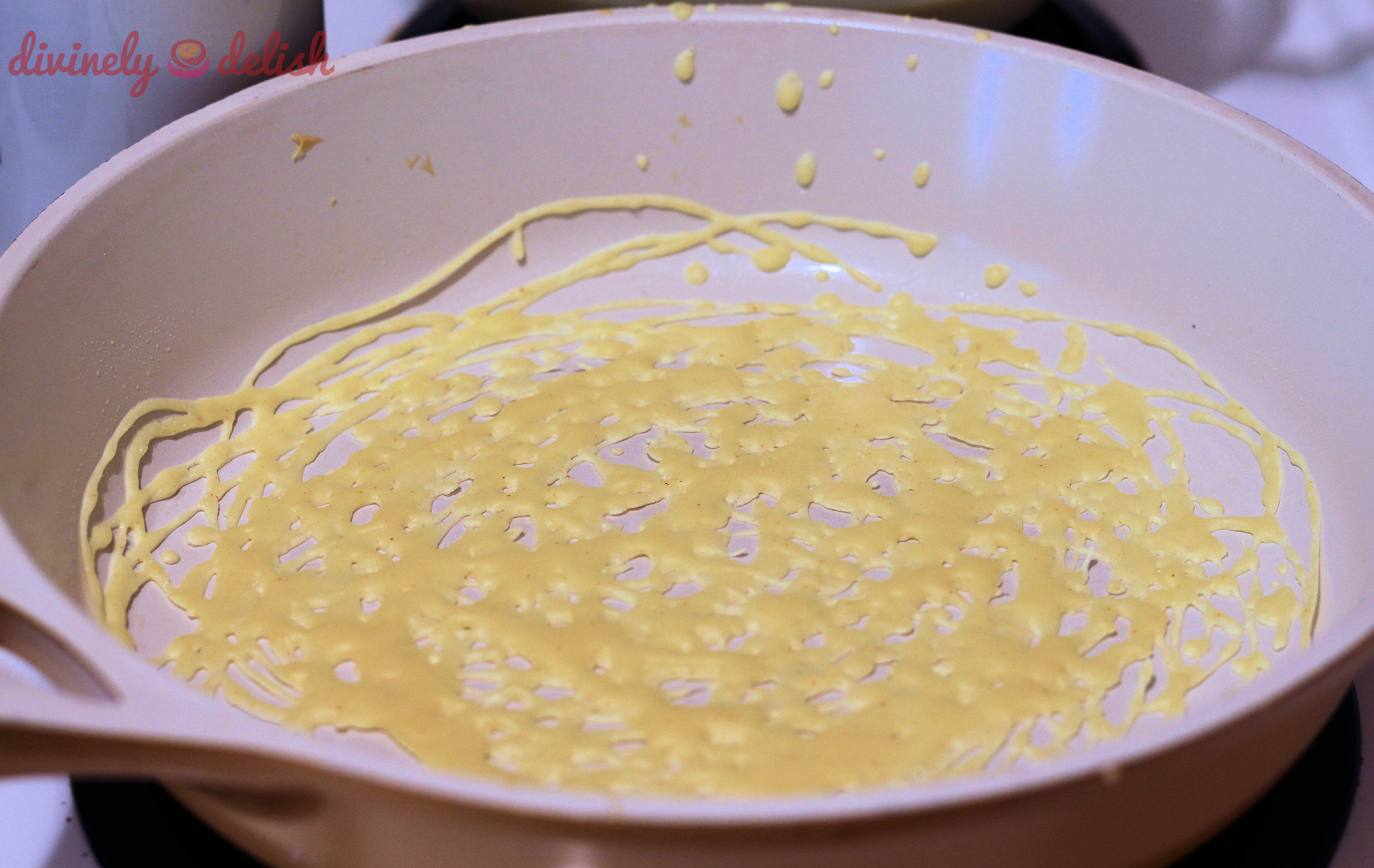 5. Heat a non-stick pan over medium-low heat (I used temperature dial 3 on an electric stove top) and brush pan with a little oil.