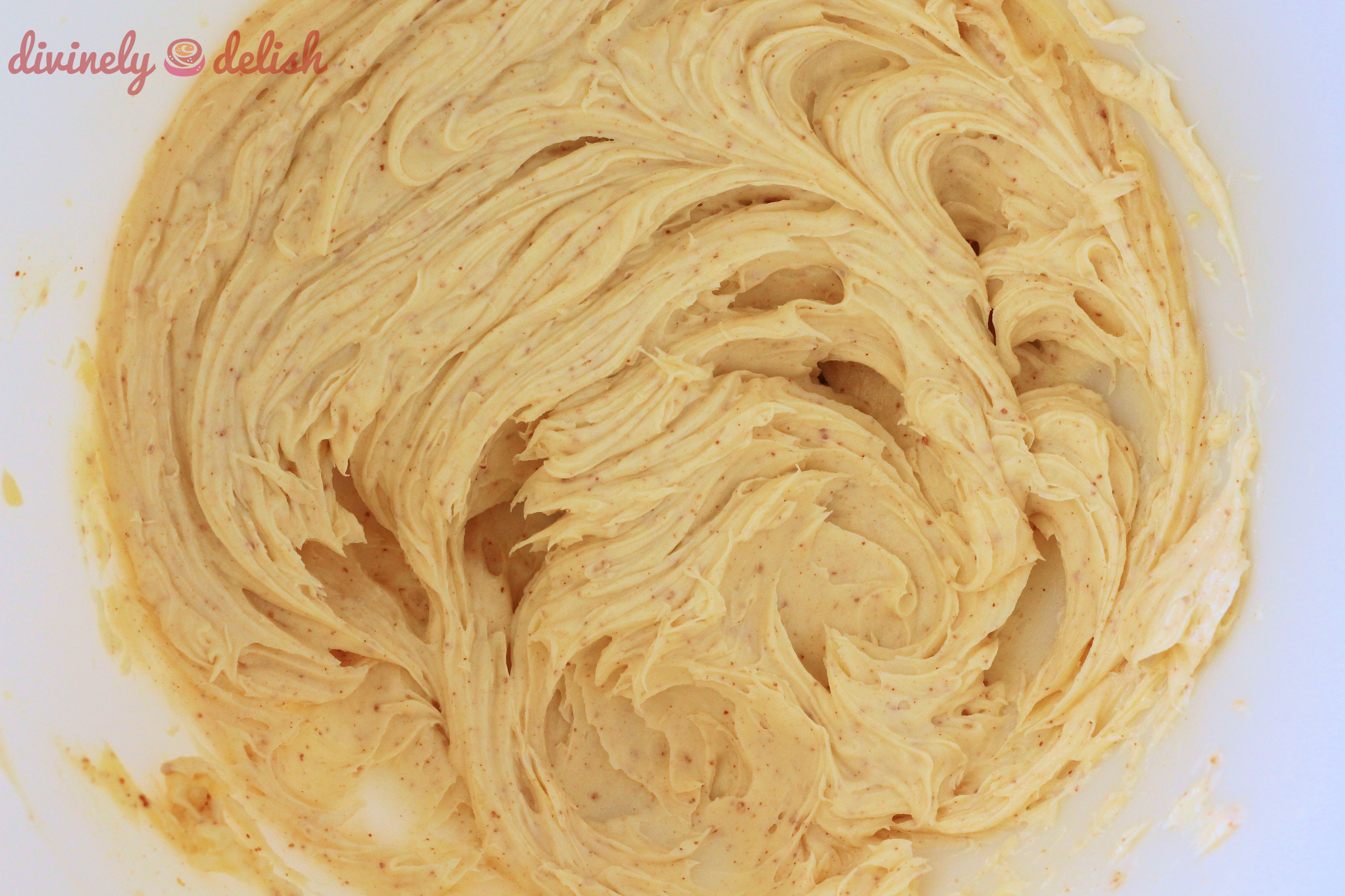 2) In a large bowl, beat the browned butter until smooth, then add in the other 1/2 cup of butter and beat on high speed until combined.