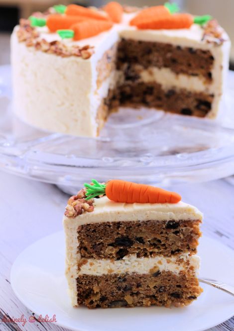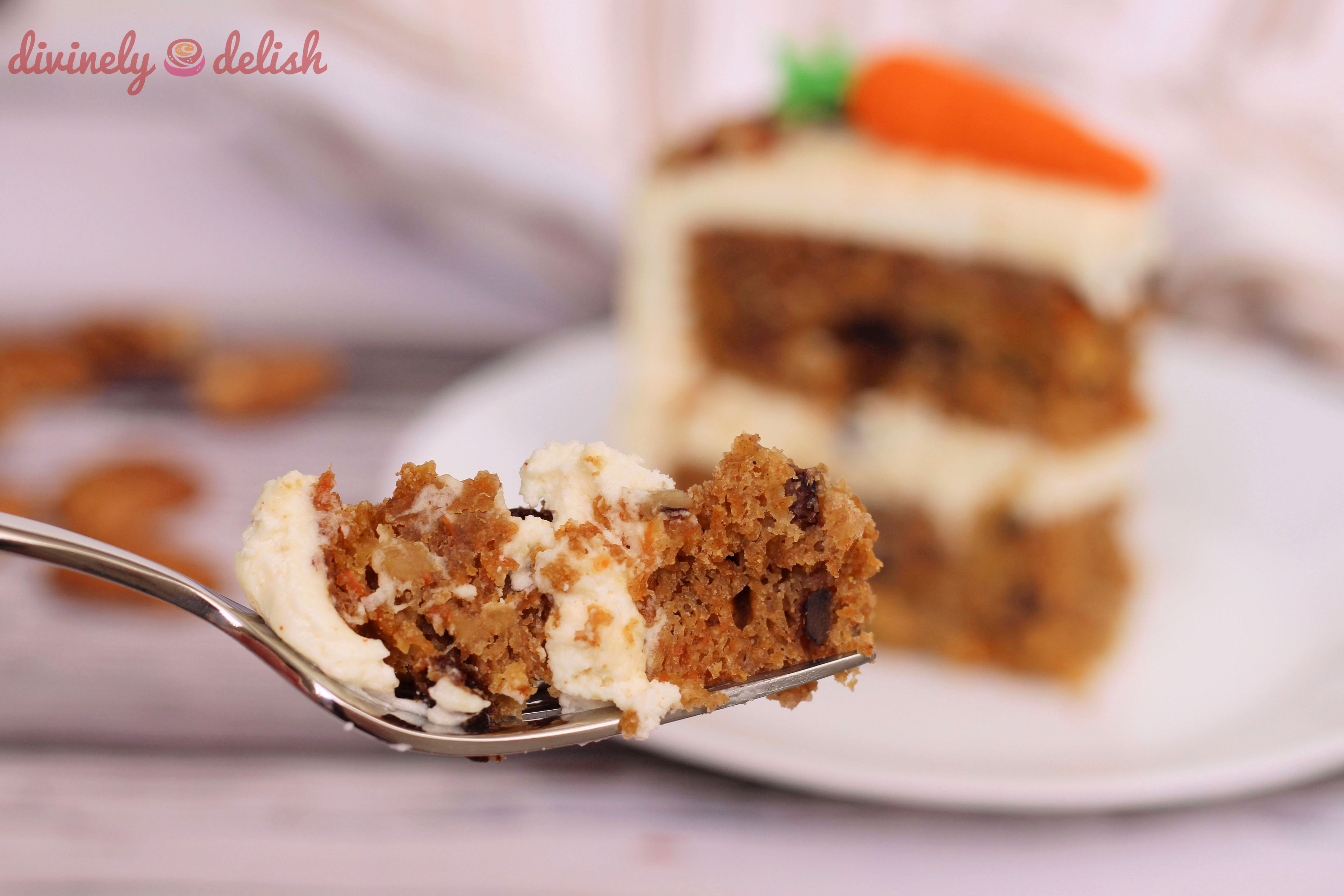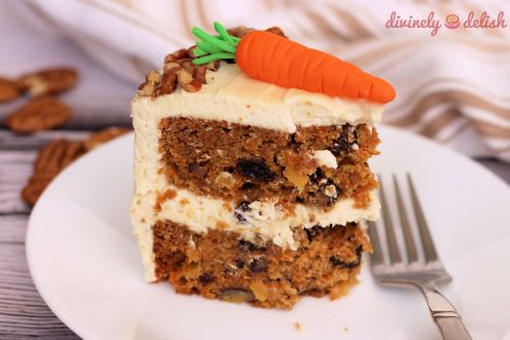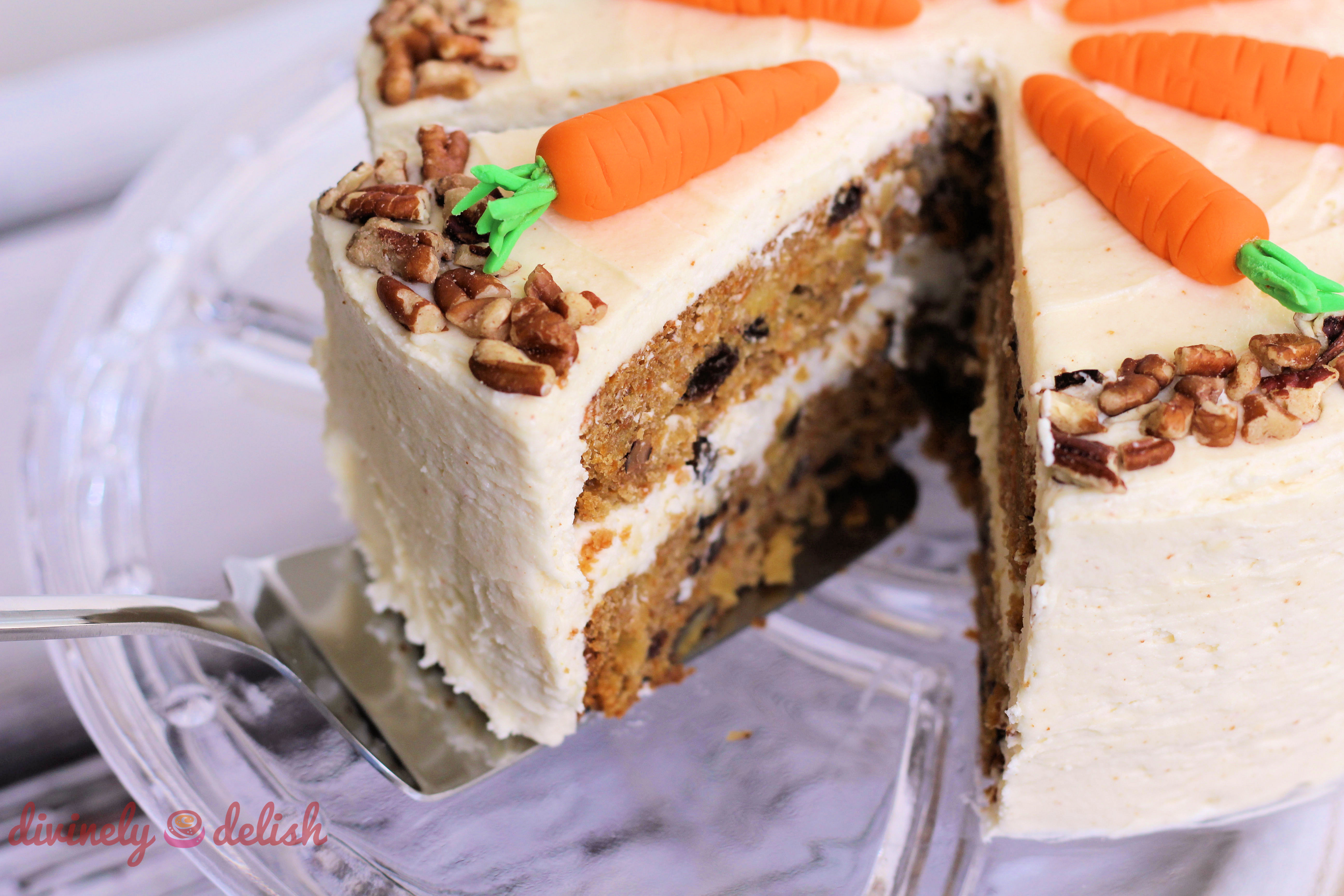 Carrots, pineapple, pecans and raisins….there’s so much goodness packed into each bite! This is truly the ultimate carrot cake!
