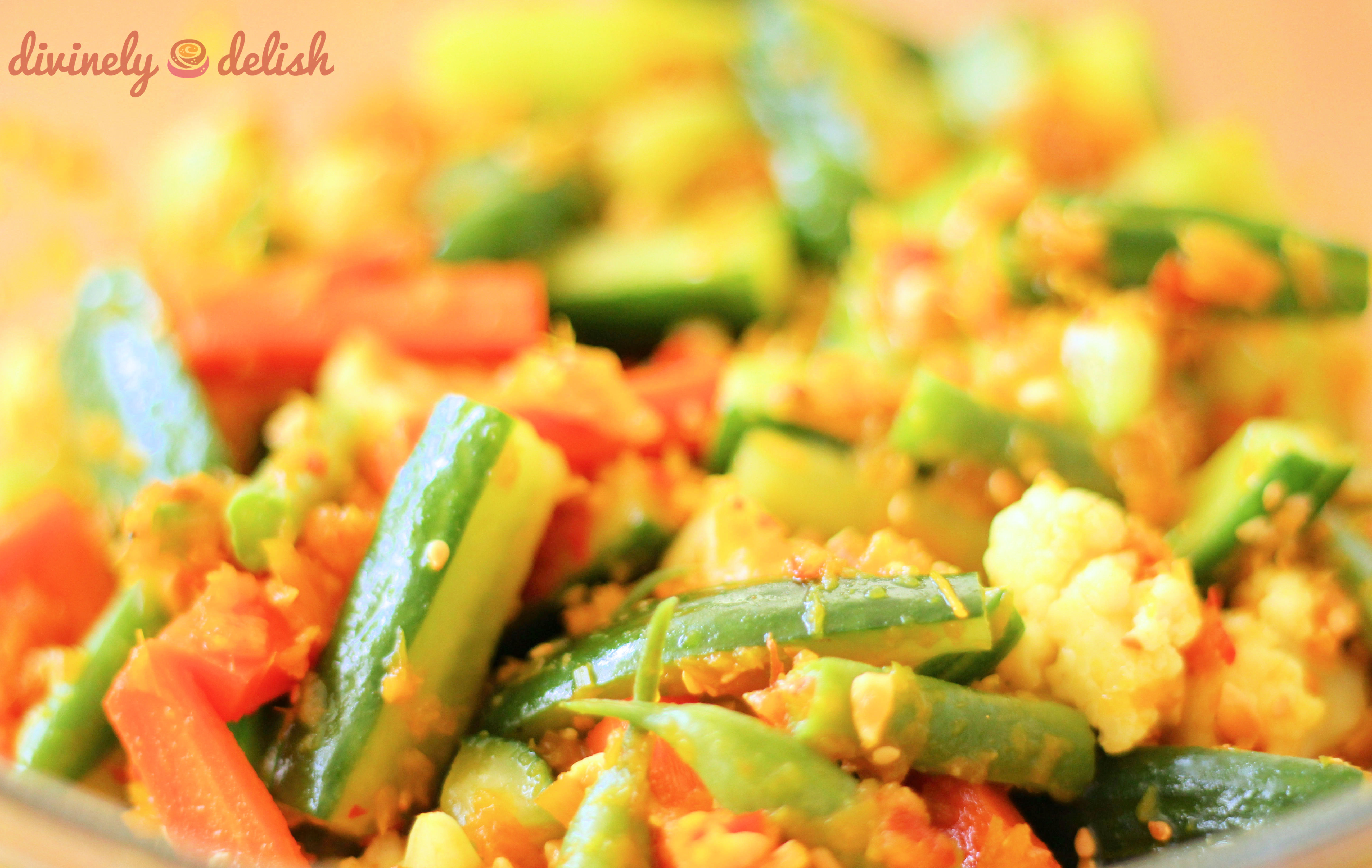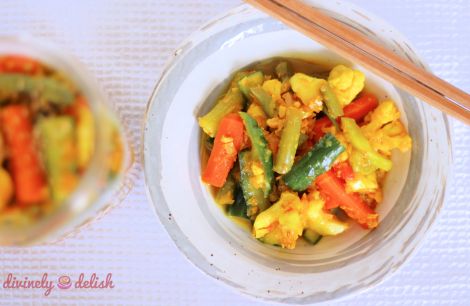 SIMPLIFIED NYONYA ACAR (SPICY PICKLED VEGETABLES) (Makes about 1 – 750 ml jar)