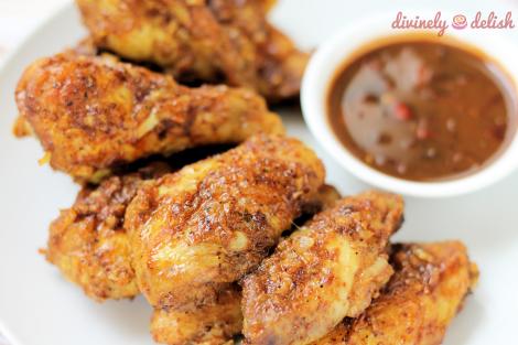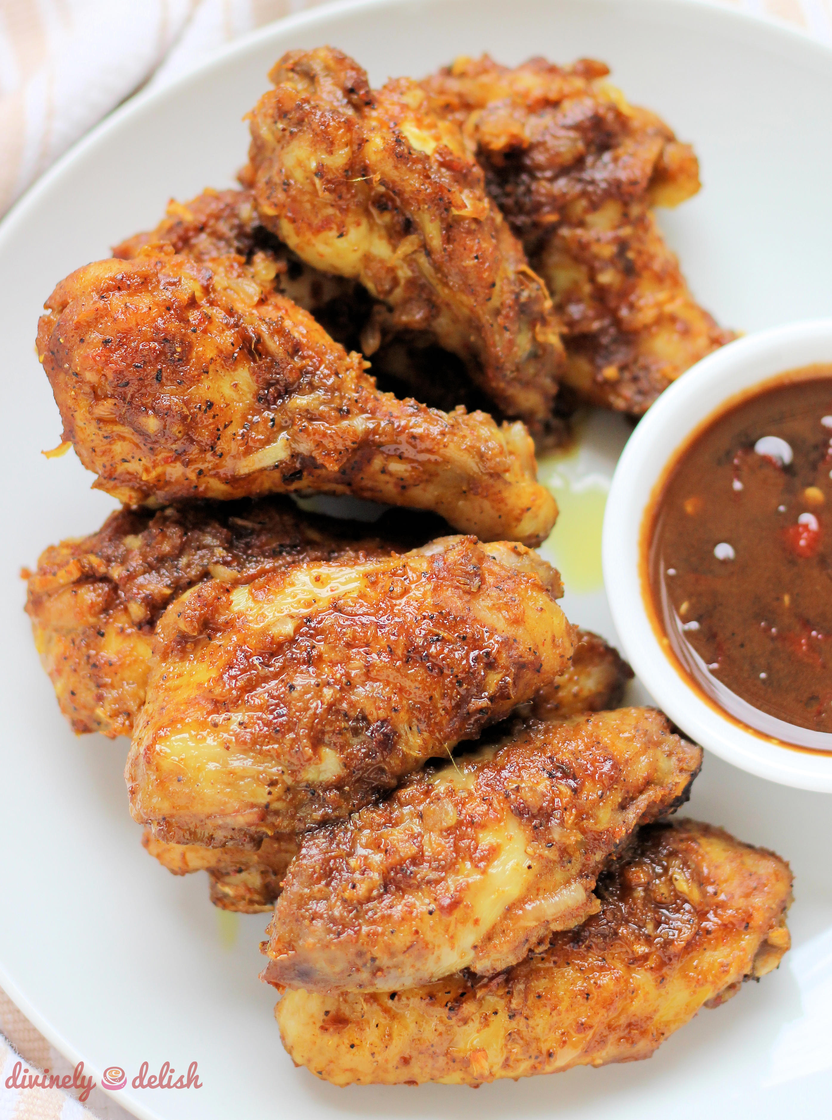 Note: If baking, preheat oven to 375F (190C). Line a baking sheet with parchment paper and lightly grease it. Arrange the wings in a single layer. Spoon the excess marinade on top of the wings. Bake for 40 minutes.