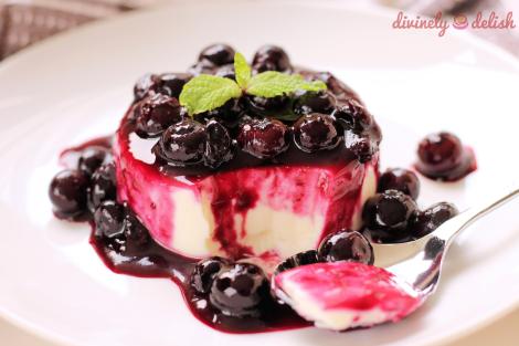 Run a small sharp knife around the edge of the ramekin. Place a plate over top of ramekin, invert and gently shake to unmold the panna cotta. Top with blueberry compote. Serve chilled.