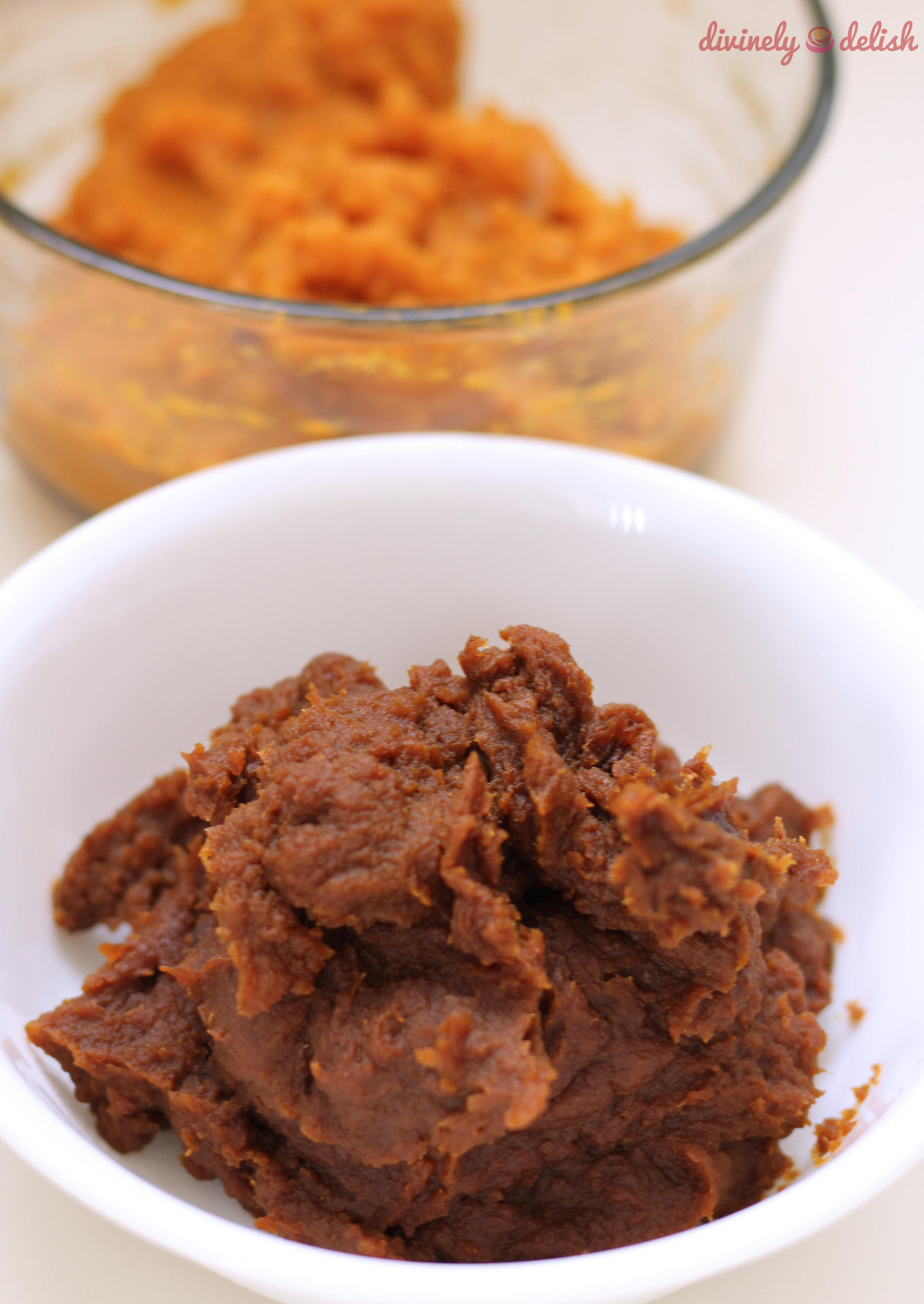 2. Prepare the mochi dough in a large bowl by first mixing the pumpkin puree with sugar.