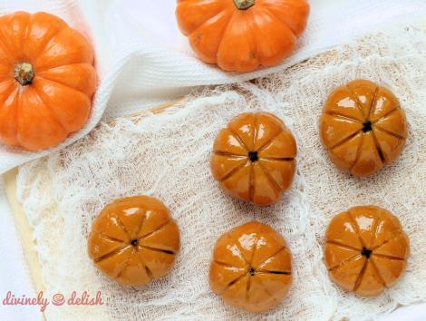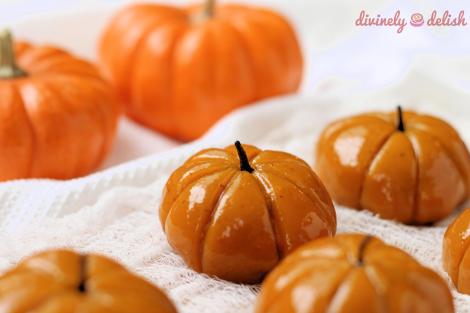 I honestly didn’t know how these mochi would turn out, so I was pleasantly surprised when they not only looked decent (and so cute!), but they tasted great too!  I don’t even think the recipe needs any tweaking!  I would’ve liked them to be a brighter orange, but I think the colour varies depending on what kind of pumpkin you use, and whether it’s fresh or canned.  Anyway, the most important thing is that they’re delicious!  If you have more of a sweet tooth, you can add 1/4 cup more packed brown sugar in the filling. But for me, it was the perfect amount of sweetness.