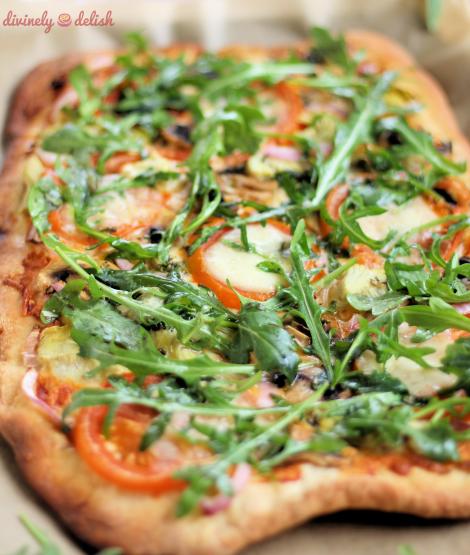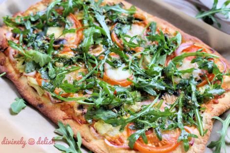 ARTICHOKE AND ARUGULA PIZZA WITH CHIMICHURRI (Makes 1 – 12″ pizza)