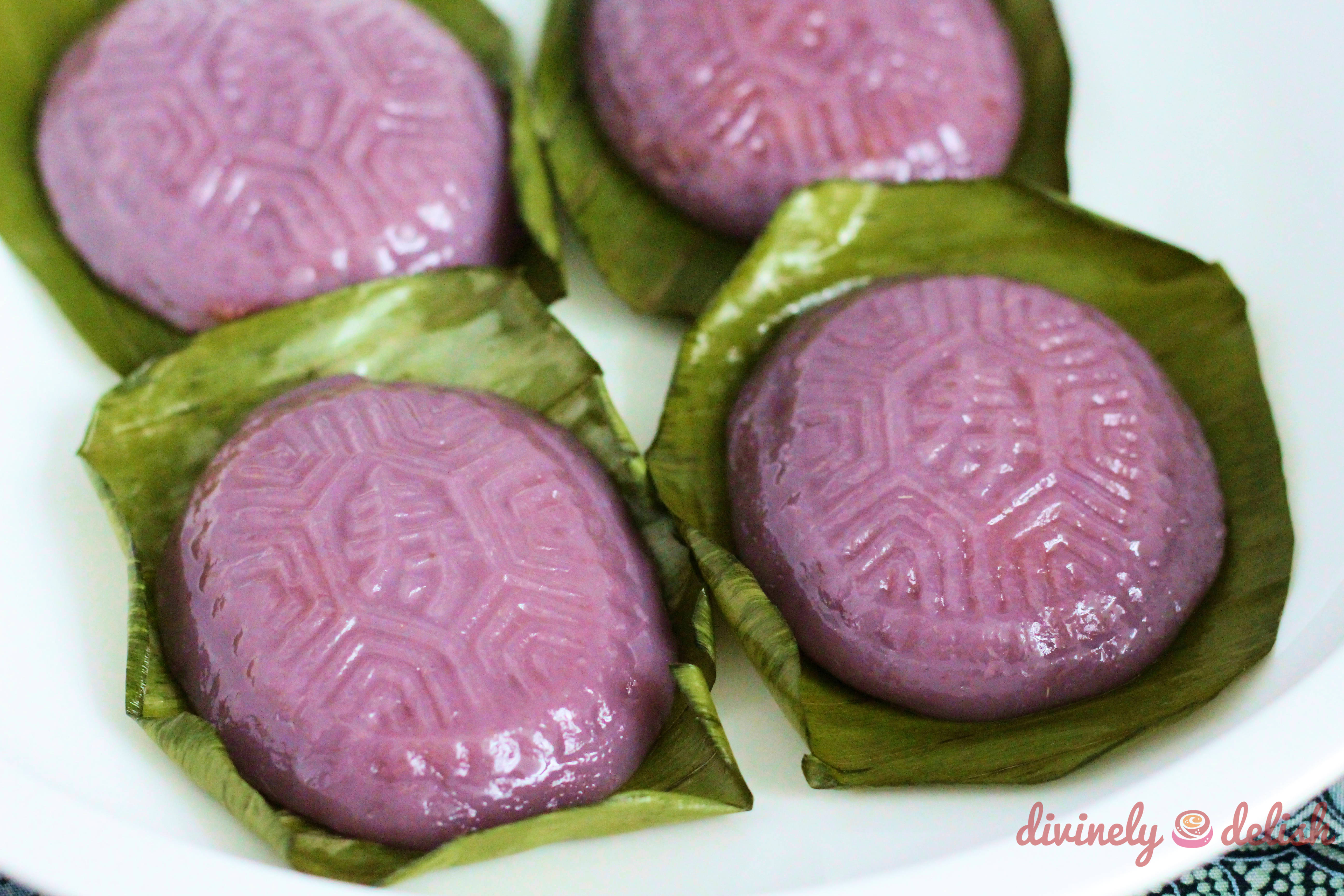 This recipe is just a variation of Angku Kuih (Red Tortoise Mochi), a popular Malaysian snack that I posted a while ago. The only difference is that for the dough of this version, I added in some mashed purple sweet potato, and instead of mung beans, I filled it with a mixture of peanuts, sesame seeds and sugar. Both are just as good, if you ask me! It’s just a matter of whether you’re in the mood for a soft filling or one with a bit of crunch.