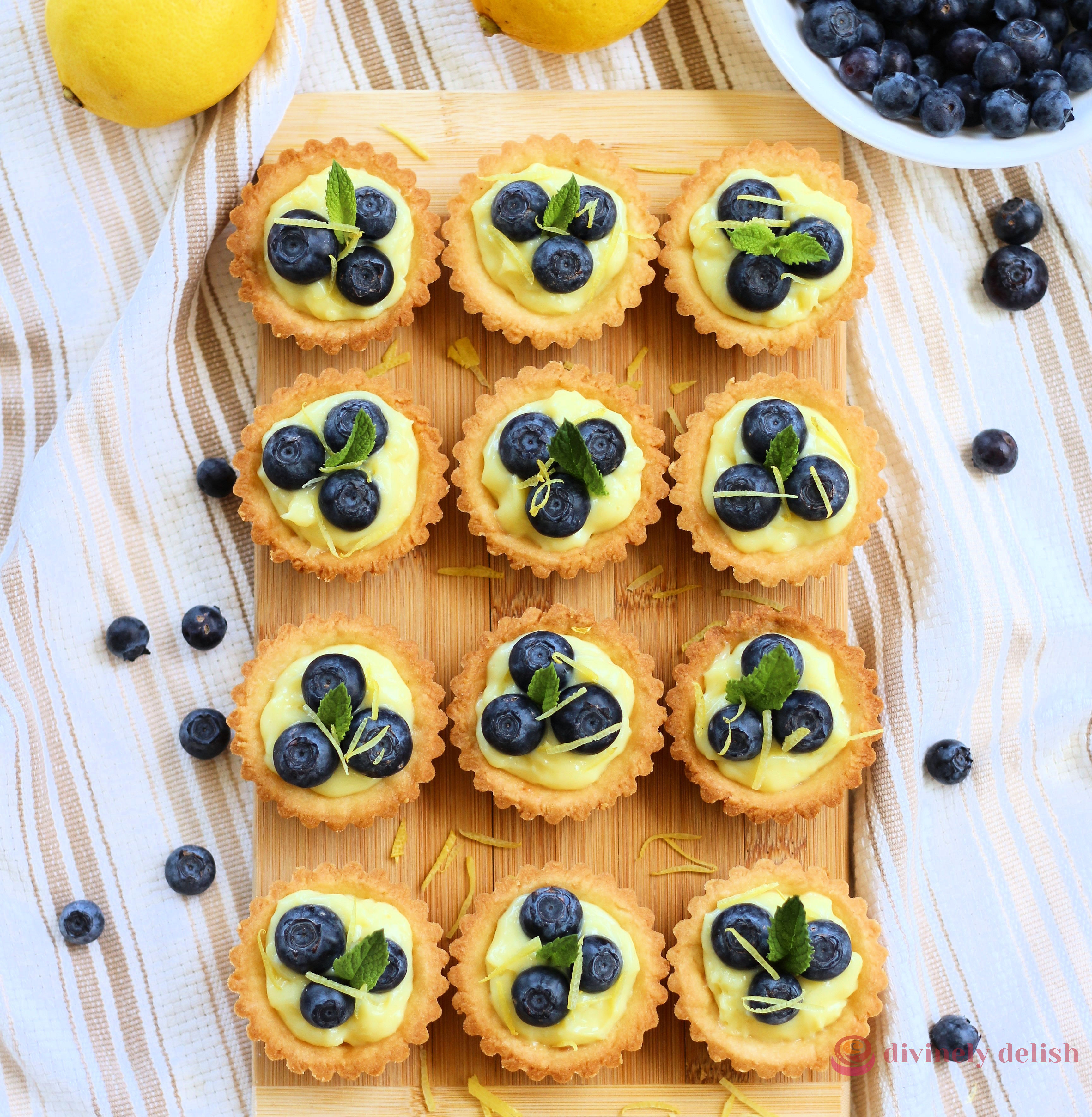 This recipe is essentially the same one that I use for my Fruit Tart recipe, except I used pastry cream with a hint of lemon, and made mini tarts instead of one big one. I used organic blueberries, but you can, of course, decorate with any kind of fruit.