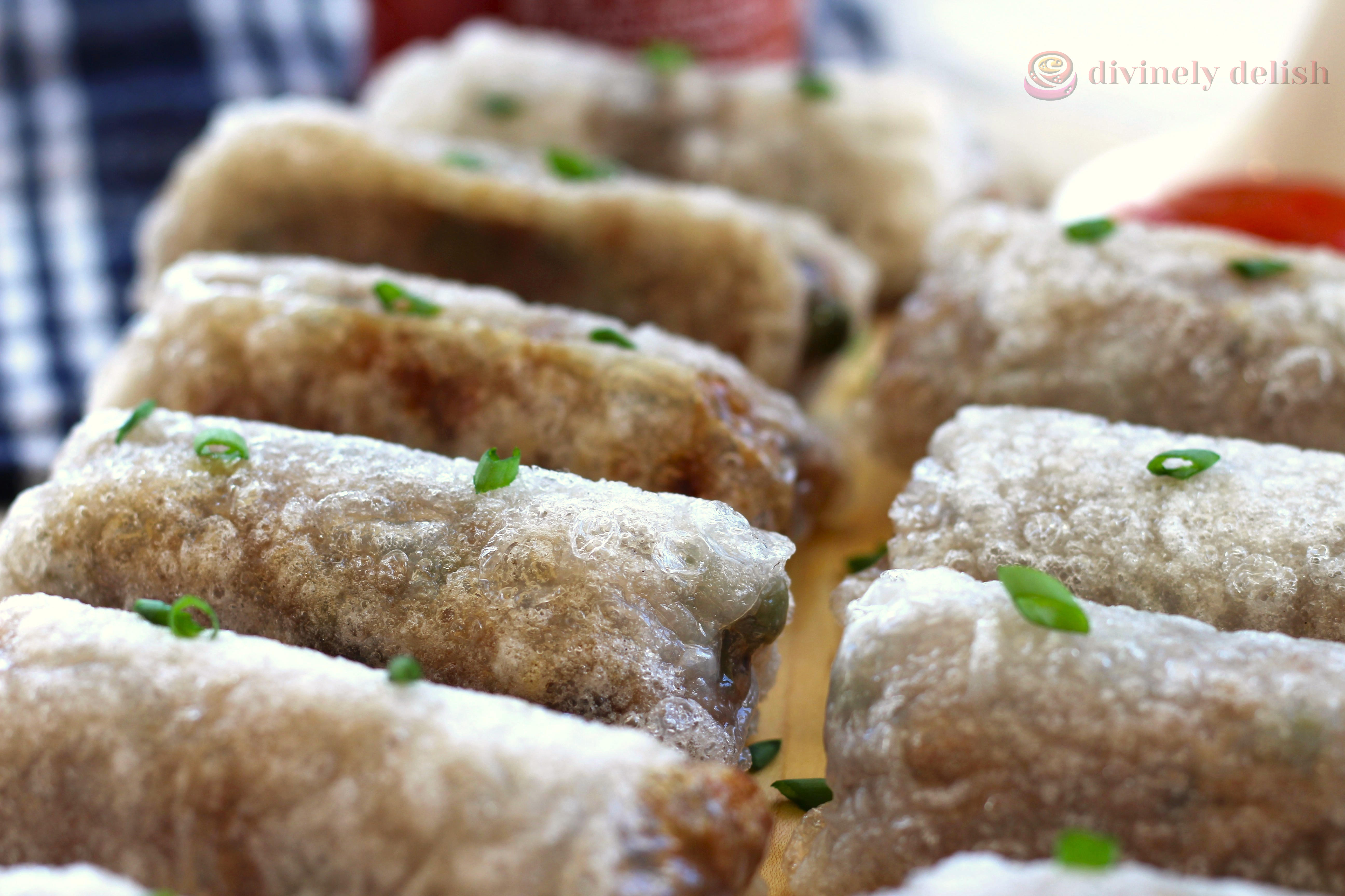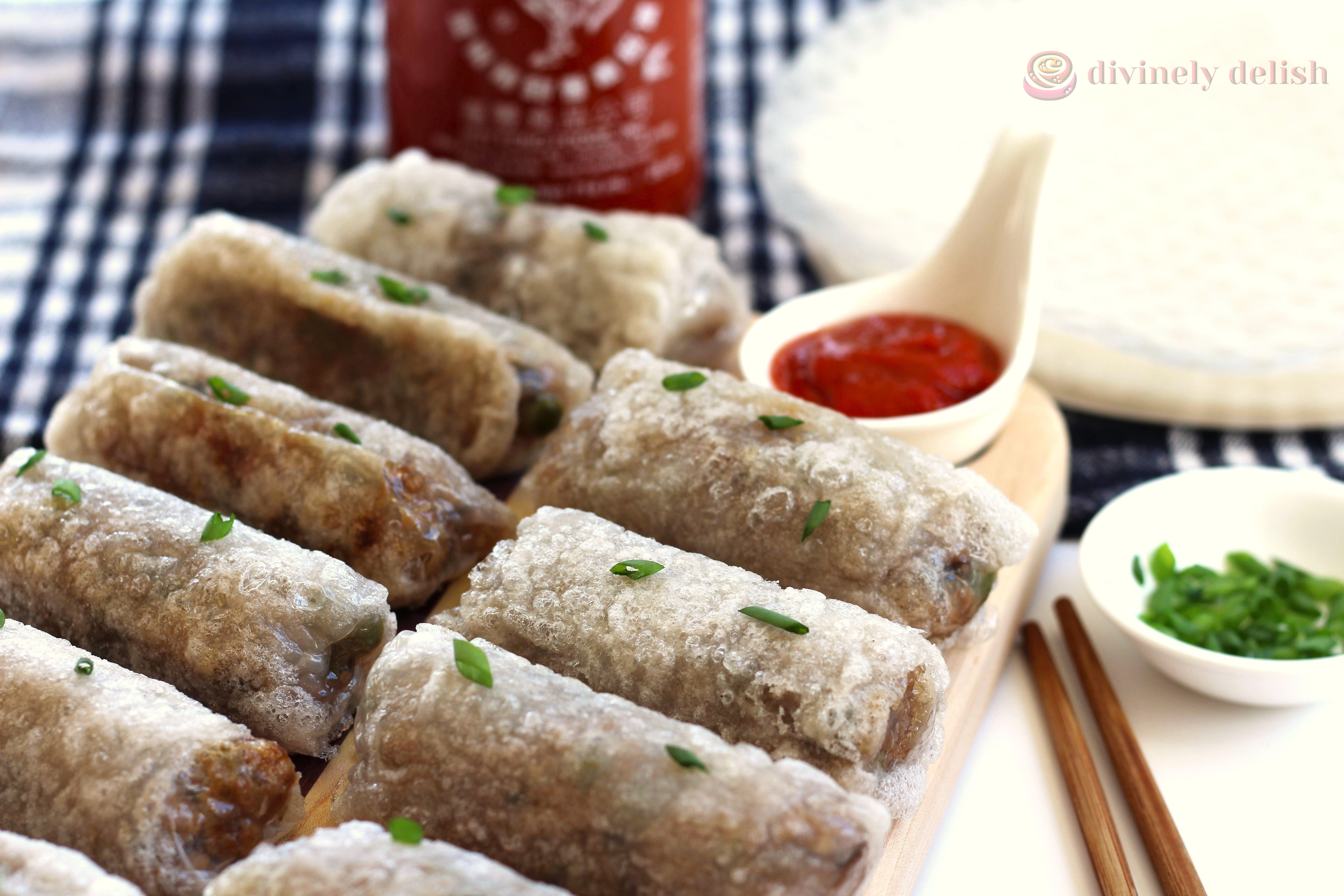 Once cooked, the skin turns beautifully crisp on the outside while retaining a slightly chewy, almost mochi-like texture inside (another reason for double wrapping—more of that satisfying chew!). The result is irresistibly delicious spring rolls packed with umami—perfect as an appetizer, snack or even a light bite alongside a meal.
