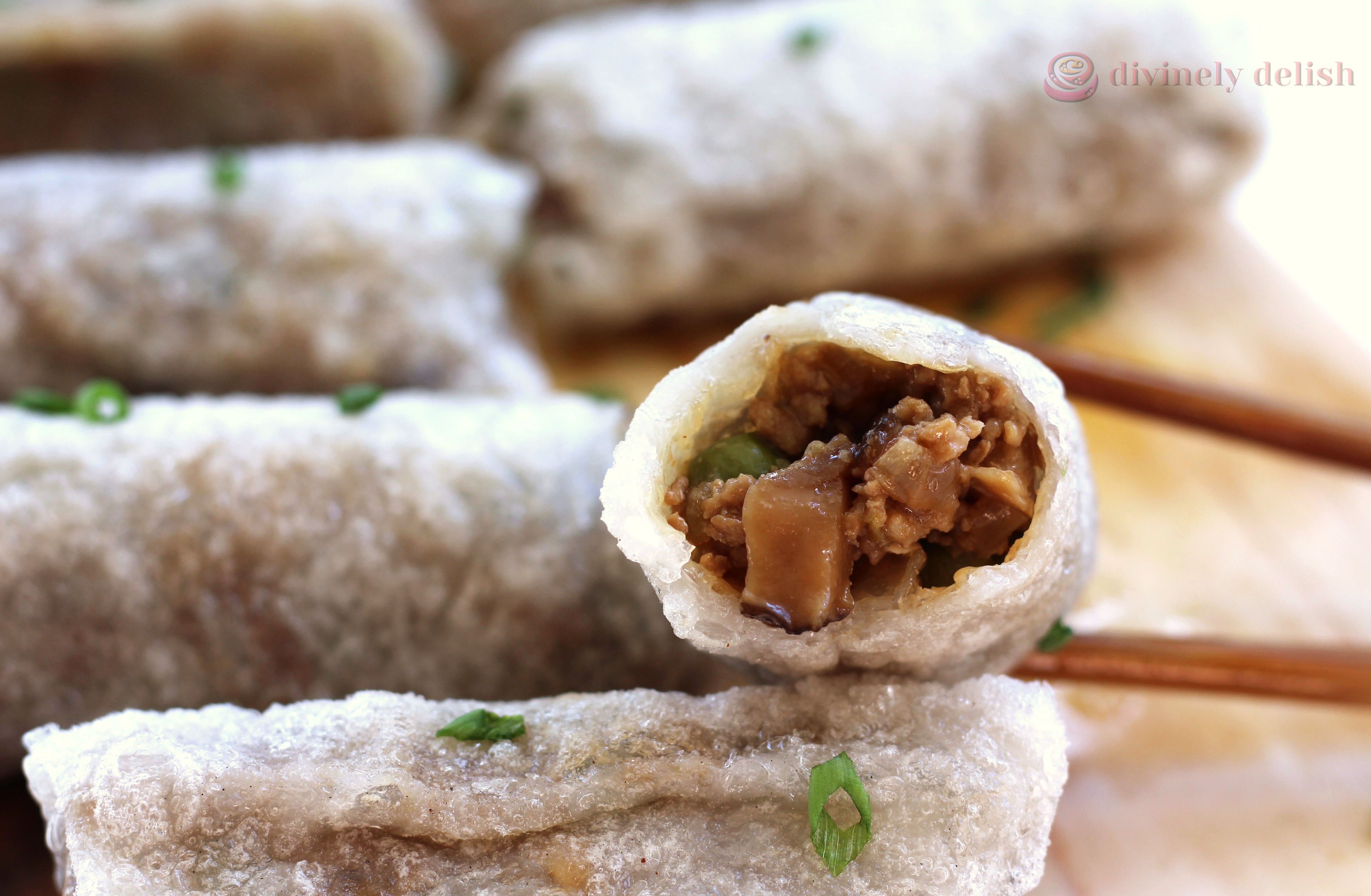 FRIED PORK AND MUSHROOM RICE PAPER SPRING ROLLS